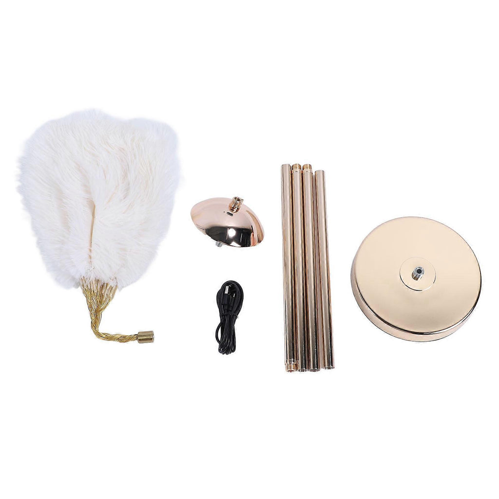 Features 1??Handcrafted Elegance: Featuring a lampshade made of 50 ostrich plumes, this floor lamp allows you to adjust the angle and position of the plumes to create your desired shape. 2??LED Lighting: With adjustable color temperatures of white light, warm light, and neutral light, this standing lamp offers stepless dimming in any mode to meet various lighting needs. 3??Sturdy and Stable: Standing at about 61 inch, this ostrich plume floor lamp is supported by a metal base with a reliable and sturdy structure that ensures stability and prevents tipping. 4??Nordic Charm: Embodying a noble and elegant Nordic style, this floor lamp is sure to catch attention while creating a cozy ambiance for activities like reading, working, or relaxing. 5??Multiple Applications: Ideal for bedside, living room, bedroom, office, or hotel settings, this modern floor lamp adds a peaceful ambiance to the entire room with its fashionable design. Specifications Item Type: Floor Lamp Material: Iron Art, Ostrich Plume Weight: Approx. 1840.00g/64.9oz Height: Approx. 154.9cm/61in Power Supply: USB 5V Plug in Light Source: White Light, Warm Light, Neutral Light Brightness Adjustment: Stepless Dimmable Control: Touch Switch Package List 1 x Lamp Head 4 x Lamp Pole 1 x Base 1 x USB Cable 1 x Plume Lampshade