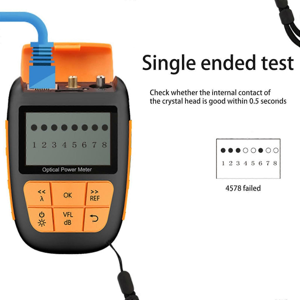 Features: Auto-off function and with large LCD display High measurement accuracy and display resolution It can display fast-tracking and real-time measurement of optical power whrn output power changes Quick response and measurement. Wide measurement range: it can provide 70dB of optical power measurement wIth 6 calibrated wavelength: 850nm,1300nm,1310nm. 1490nm,1550nm,1625nm. Specifications: Wave length range: 800-1700nm Light efficiency detector type: InGaAs Light efficiency measurement range: -70~+10dbm Light efficiency resolution rate: 0.01nw or 0.01dbm Connector type: SC Design wave length: 850/980/1300/1310/1490/1550/1625 Red light export standard: 10mW/650nm Number storage: Up to 250 Storage method: dbm Own school deviation amount setting range: -5~+5dbm step 0.1dbm Network crystal for head test: standard Rj45 Battery specification: Need 3 AAA batteries(without Battery) / 3.7V 300mA Rechargeable Charging time: less than 3 hours Charging port: Micro-USB Attrition: Max 85mW Battery usage time: Rechargeable battery more than 30 hours ;Dry battery more than 48 hours(Vary) Size: approx 92x58x27mm/3.62x2.28x1.06in Optional Type: Red Light AAA Battery Type / Red Light Rechargeable Type/ AAA Battery Type without Red Light/ Rechargeable Type without Red Light Note: Batteries are not included in the package. Due to the problems of lighting effects and shooting angles, there will be certain tolerances in the product, please understand. Please allow 0-1cm error due to the manual measurment. Package includes: 1 PC x Fiber Optical Cable Tester