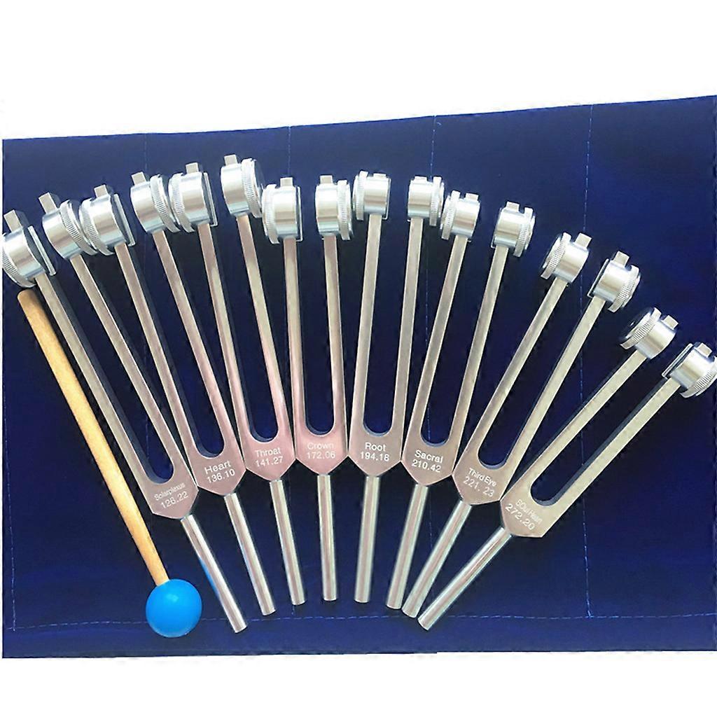 8Pcs 126.22Hz 136.1Hz Tuning Fork Chakras Set with Bag Mallet for Healing