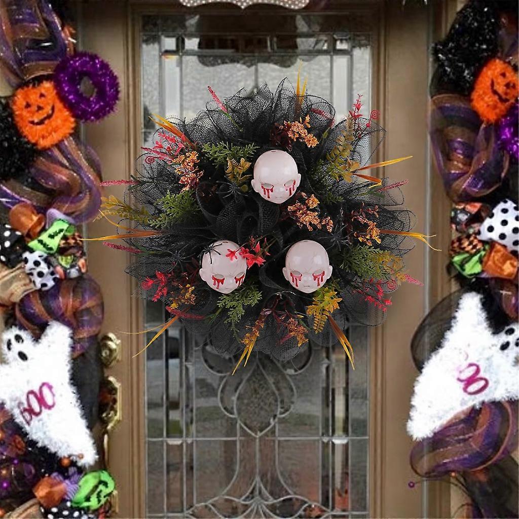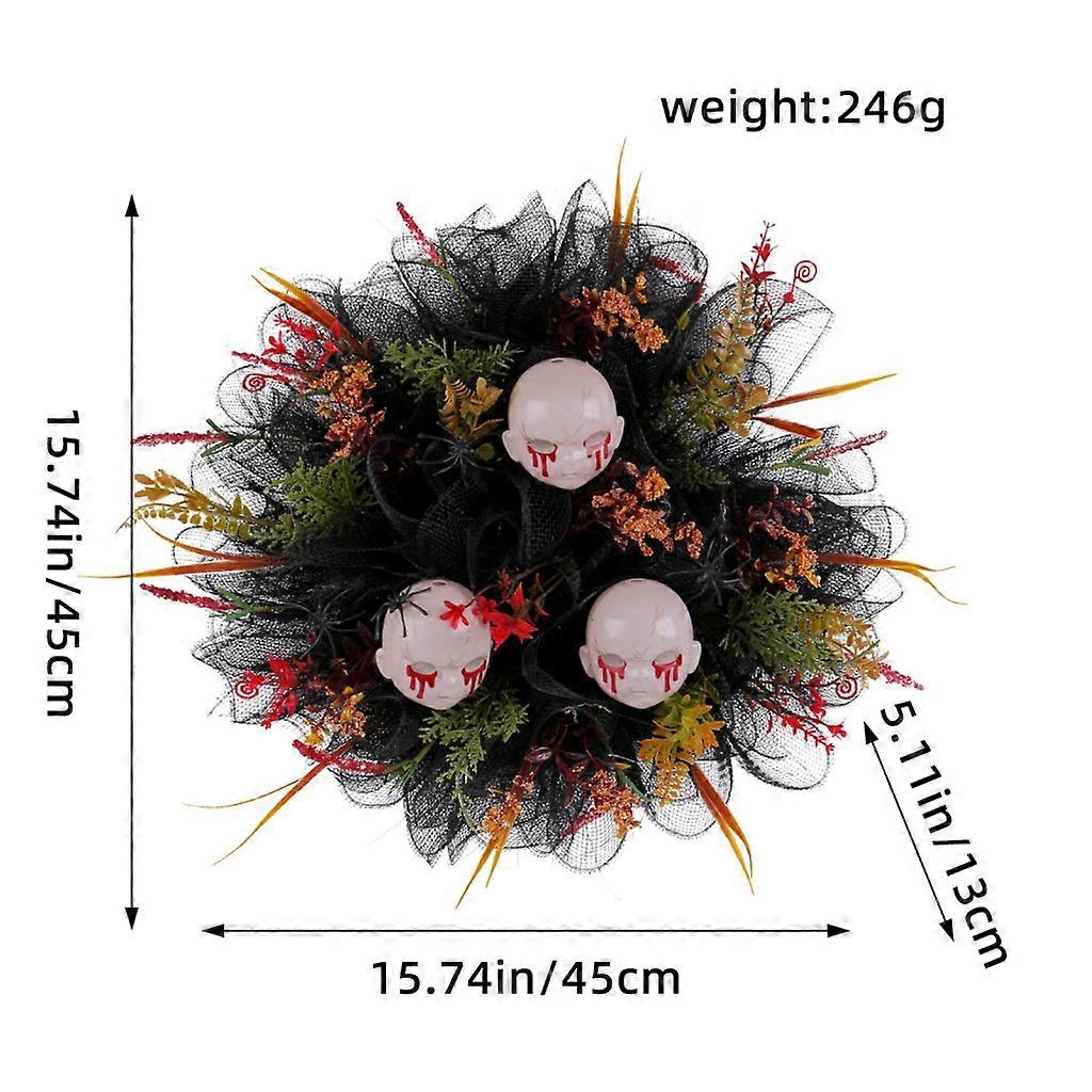 Features: This Halloween wreath is full of Hallween skull, artificial leaf and flower, more realistic. Great for your front door, wall, farmhouses, garden, Christmas, Halloween, indoor, and outdoor decorations. Our artificial leaf wreath craft with plastic, leaf and flower would not fall and fade. Do not need water and clean. Proper size for front door, wall, window, porches, hallway, garden. After prolonged use, clean with dry cloth. Please avoid rain snow and direct sunlight. This skull wreath great for season, used as front door wreath, Halloween Wreath, Christmas wreath, wedding wreath. Add other embellishments to make Halloween wreath you want, making it a unique holiday decorations for Halloween party, indoor and outdoor. Specifications: Color: Black Component: Plastic; Felt Size: Approximately. 45x13x45.0cm/15.74x5.11x15.74in Weight: Approximately. 246g Note: 1.Please allow 0-1cm error due to manual measurement. make sure you donot mind before bid. 2.Due to difference between different monitors, the picture may not reflect the actual color Package includes: 1Piece Halloween Skull Wreath
