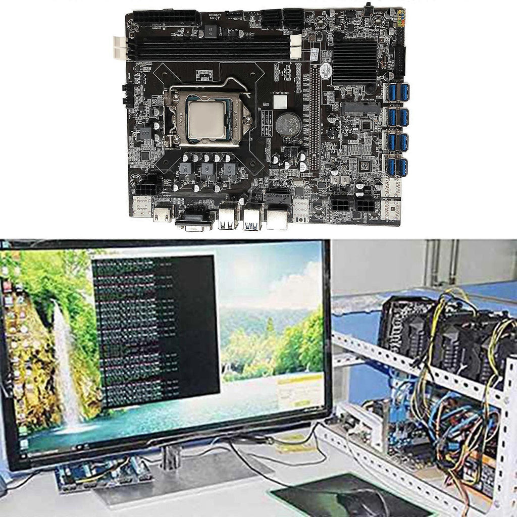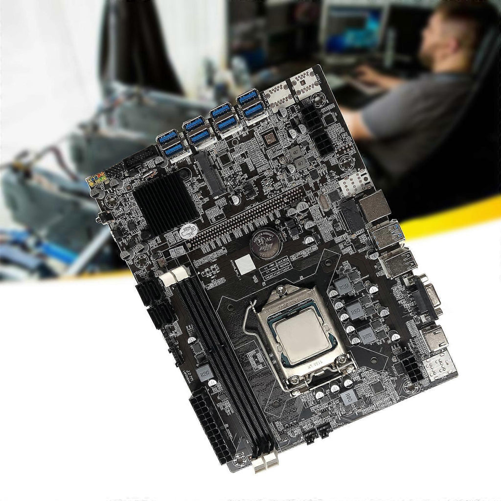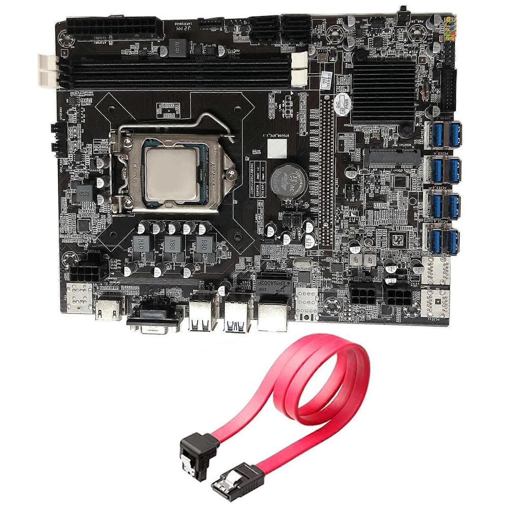 Features: and high quality All solid capacitors, fine workmanship, professional and stable. High compatibility brings a higher experience. Motherboard display input with VGA HDMI-compatible. The CPU processor randomly sends G530 or G1610 as a gift, and the SATA cable is also a gift. The color of the cable is random. The power socket has a 4-pin, 24-pin power connector. Specifications: Model: B75USB-BTC Chipset: BGA (for Intel B75 for Express Chipset) CPU platform: for Intel CPU socket: LGA_1155 pin CPU model: G530 or G1610 CPU, shipped randomly Network card chip: 1 x REALTEK Gigabit/100M network card (random) Audio chip: N/A none Memory type: dual channel 2 x DDR3 The maximum memory capacity is 16G in total, with a maximum of 8G for a single slot, 2 x memory slots (maximum total 32GB) Memory description: Support 1333/1400/1600MHz frequency CPU TDP: 91W Support: Support 8 graphics cards Under for Windows, the recommended combination: "4N+4A, 8N+ or 8A Working environment: 0-95% relative humidity, non-condensing, -10c-60c Motherboard size: approx. 230.32 174.92mm/9.07x6.89in Detailed interface: Display interface: 1 x HDMI-compatible, 1 x VGA USB rear + onboard: 10 x USB 3.0, 2 x USB 2.0 USB front: 2 x USB2.0 Hard disk interface: 4 x SATA2.0 Network card interface: 1 x LAN Gigabit/100M network card (random) Memory slot: 2 x DDR3 CPU socket: LGA(1155) Chipset: BGA (for Intel B75 for Express Chipset) Hard disk interface: 1 x MSATA BIOS initial restore: JCMOS Speaker interface: 1SPK Power interface: 24pin_ATXPWR + 8pin_ATX12V Back I/O interface: USB 2.0 x 2 USB 3.0 x 2 VGA x 1 HDMI-compatible x 1 LAN x 1 Note: Due to the different monitor and light effect, the actual color of the item may be slightly different from the color showed on the pictures. Thank you! Please allow 1-3mm measurement deviation due to manual measurement. Package includes: 1Set x Motherboard with SATA cable