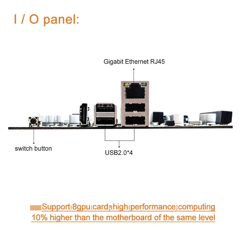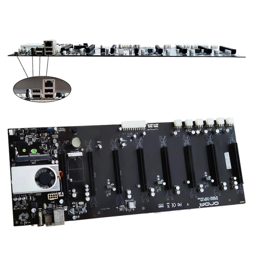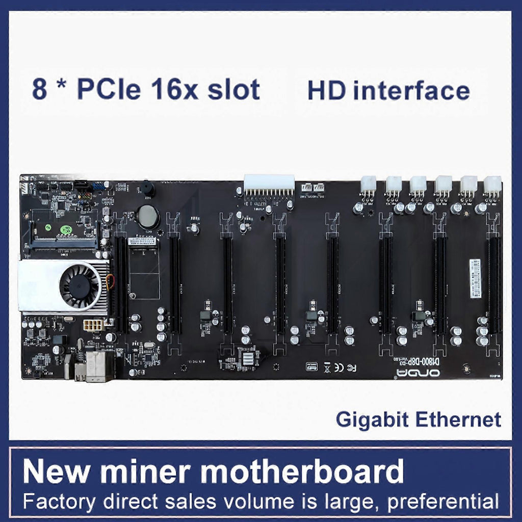 Features: and high quality This product is a mining machine motherboard CPU set,low power consumption, less heat generation, energy saving and safe use. Memory slot, 8 graphics card plug. The work actually done for you is lasting and useful. The voltage stabilizing capacitor can provide a stable voltage for your power supply equipment. It can ensure silent performance, low power consumption, less heat generation, energy saving and safe use. Specifications: Model:BTC-D1800 Display : Onboard HDMI+PCIE x 1600MHZ Memory: 1 x DDR3 sodimm socket Storage: 1 x SATA3.0+1 x SATA2.0+1 x for m SATA2.0 USB:4 x USB 2.0 + 2 x front USB2.0 pin Multi function card: ITE IT8772E Expandable port: 8 x PCIE 16X( PCIE x1 GEN2 spped) 1 x SATA3.0+1 x SATA2.0+1 x mSATA2.0 hard disk interface Network: 1 x Realtek RTL811F Chipest for Gigabit networks Spacing: 55mm Power supply of PSU: ATX 24 PIN Size: approx. 48x18cm/18.90x7.09in Color:black Note: Please allow 0-1cm error due to manual measurement. pls make sure you do not mind before you bid. Due to the difference between different monitors, the picture may not reflect the actual color of the item. Thank you! Package includes: 1PC x Motherboard