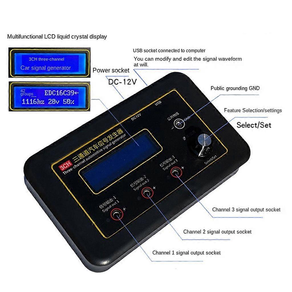 Features: Experience accurate and reliable automotive diagnostics with our three channel automobile signal generator ecucomputer maintenance detector crankshaft camshaft sensor simulator. Our simulator is designed to accurately simulate the signals of crankshaft and camshaft sensors, providing precise outputs for diagnosing and troubleshootingecu computerissues. Perfect for professional automotive technicians and diy enthusiasts, this versatile tool is compatible for various car brands and models, making it an essential companions for diagnosing and repairing electronic system faults. Whether you are in an automotive repair shop or your personalgarage, our simulator is idealfor quickly and accurately identifying the root causes of electronic system malfunctions, saving you time and effort. Take control of your car electronic system maintenance with confidence, thanks to our high precisions three channel automobile signal generator ecucomputer maintenance detector crankshaft camshaft sensor simulator. Specifications: Material:Plastic Size:As Picture Shown Type: automobile computer ECUfault diagnosis instrument Model: Three-channel signal generator Voltage: 12V Working temperature: -35~+55 Material: plastic Color: black Applicable models: 12V 24V and diesels vehicles Note: .Please allow 1-2cm errors due to manual measurement, make sure that you do not mind before you order. .Due to the difference between different monitors, the picture may not reflect the actual color of the item. Thanks for your understandings. Package includes: 1 Set Automobile Signal Generator