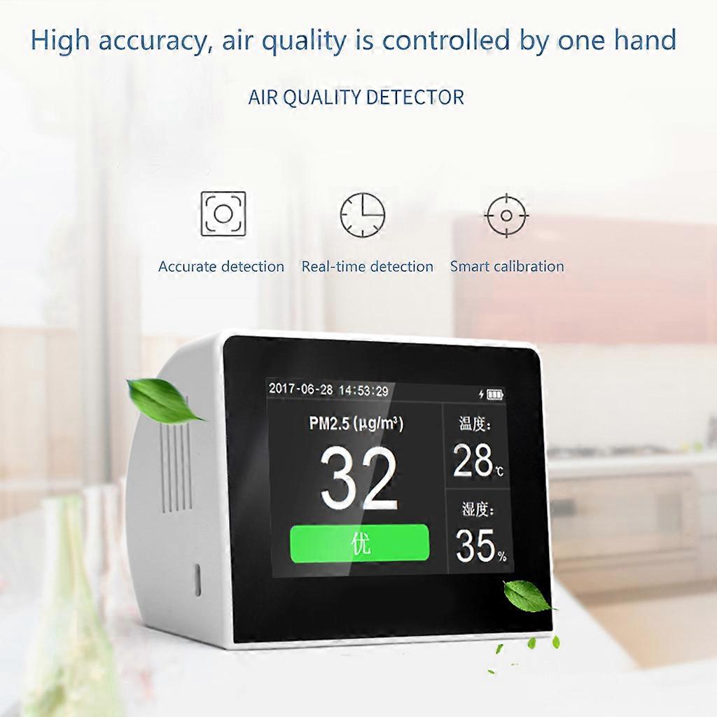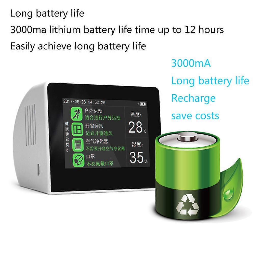 Features: 3.5-inch TFT full-color display, resolution 480RGB x 320Dots, Angle view up to 160 degrees, adjustable backlight brightness. High accuracy carbon dioxide detector with temperature humidity display. This CO2 monitor is equipped with a high-precision sensor. Portable size, lightweight, easy for carrying. Co2 sensor, accuracy: 70ppm /3%, range: 400~4000 PPM, single response time: 2 seconds (s), power-on response time: 2 minutes (Min)Temperature sensor, resolution: 0.04, accuracy: 0.3, repeatability: 0.1, range: -40 ~ 125, response time: 5 seconds (s). Humidity sensor, resolution: 0.7%RH, accuracy: 3.0%RH, repeatability: 0.1%RH, range: 0%RH ~ RH, response time: 8 seconds (s).USB(mini) interface DC5V/1A charging. 3000mah polymer lithium battery power, with overcharge and overcurrent double for protection circuit, can be recharged use, long standby for time. Specifications: Material: ABS Size: 100x78x58mm/3.94x78x58mm Co2 sensor, accuracy: 70ppm /3%, range: 400~4000 PPM Temperature sensor, resolution: 0.04, accuracy: 0.3 Humidity sensor, resolution: 0.7%RH, accuracy: 3.0%RH Power: 3000mah polymer lithium battery Note: Please allow 1-3cm error due to manual measurement. pls make sure you do not mind before you bid. Due to the difference between different monitors, the picture may not reflect the actual color of the item. Package includes: 1x Air Quality Monitor