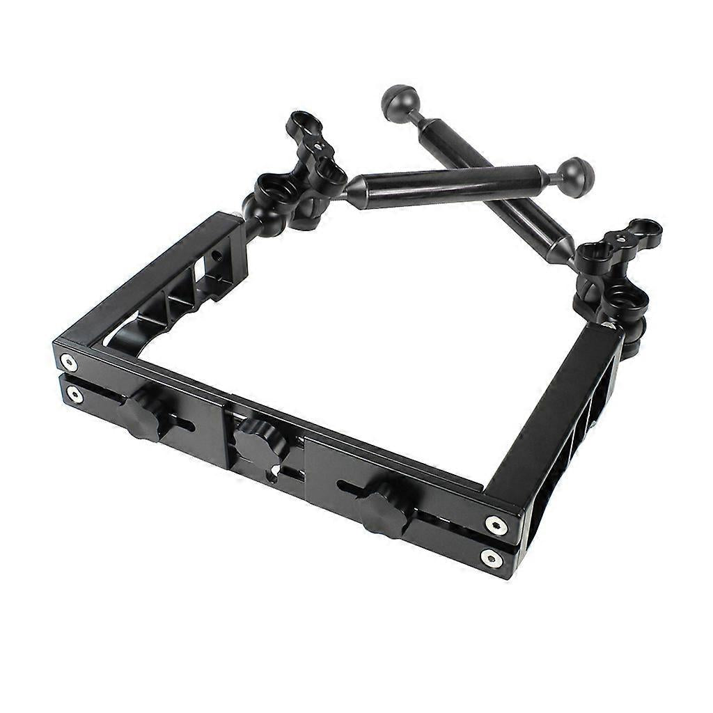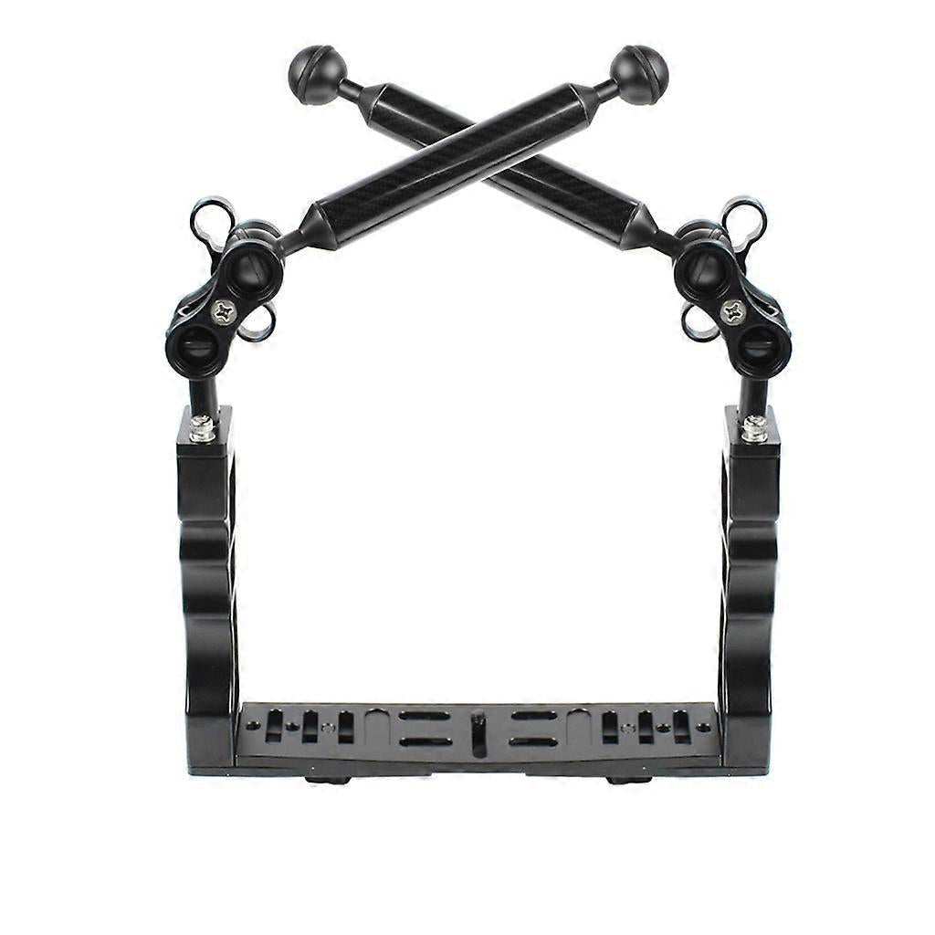 and high quality Descirption: Features: Dual handle aluminium diving tray stabilizer holder kit with dual 2-hole ball clamps & floating arm for underwater camera housings. Dual Ball Clamp: made of hard coat anodizing aluminium, durable to use, it can attach with two 1-inch diameter balls. Tray Holder: aluminum alloy material, durable to use, it is a sturdy platform for mounting underwater video/strobe lights by attaching arms to 1" ball mounts. Floating Arm: made of high quality carbon fiber aluminum material, lightweight and double ball design, durable to use. Standard 1/4 inch screw underwater tray, can be used for majority of underwater camera housings, great for shooting water-activities photos, or diving under water. Specification: Material: Aluminum Alloy+Carbon Fiber Color: Black for Butterfly Ball Clamp: Approx. 6.3x5.5 for cm/2.48x2.16 inch Diameter of Lamp Arm: Approx. 20.8 mm/0.for 81 inch Length of Lamp Arm: Approx. 203.2 mm/8 inch Lamp Arm Ball: Approx. 2.54 for cm/1 inch Hand Grip Distance: Approx. 28 for cm/11.02 inch Notes: Please allow 0-1cm error due to manual measurement. pls make sure you do not mind before you order. Due to the difference between different monitors, the picture may not reflect the actual color of the item. Thank you! Package Includes: 1x Dual Handheld Grip 2x Two-hole for Butterfly Ball Clamps 2x 8" Aluminum Aloy+Carbon Fiber Lamp Arms