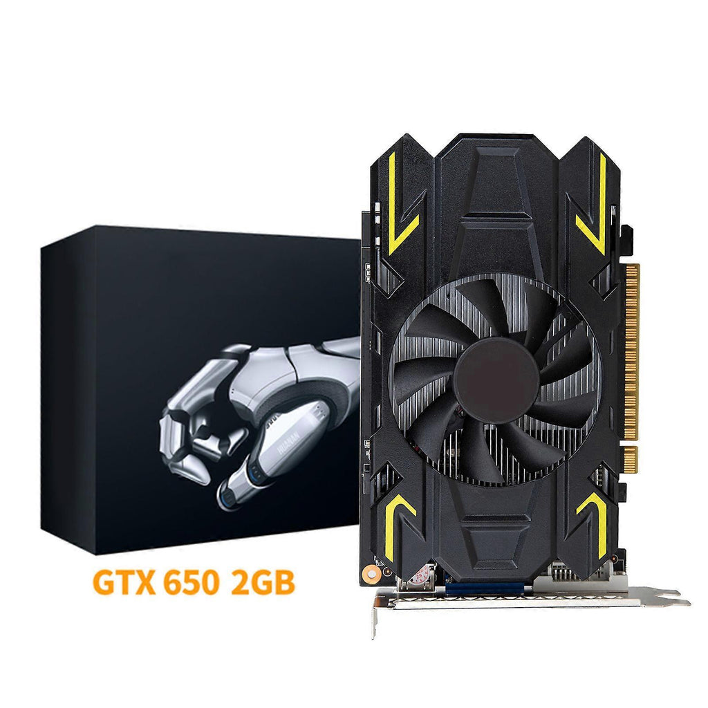 Features: and high quality It offers compatibility with a range of systems. It also includes DVI VGA and HDMI-compatible outputs for extended connections. Low profile design saves more space. This product is small and not much space. Stainless steel shackle is harder and more corrosion resistant. This product has a very long service life. This product has very good heat dissipation performance, which can promote heat dissipation and is not easy to generate heat. It features a smaller fan hub, which facilitates longer blades, and a retaining ring to increase downward air pressure. Specifications: Model: GTX650 Chip Process:28nm Cuda Core:384 Core Clock/Memory Clock(MHz):1059MHz/5000MHz Memory Interface:128Bit Video Memory Capacity / Type:2GB / GDDR5 The Max resolution:2560x1600 Display Interface:HDMI-compatible +DVI +VGA Interface type:PCI for Express 3.0 16X Max power consumption:65W Recommended power supply :300W or above 3DAPI:Directx 11 Support HDCP:Yes Product size:approx. 180x110x35mm/7.09x4.33x1.38in Note: Please allow 0-1cm error due to manual measurement. pls make sure you do not mind before you bid. Due to the difference between different monitors, the picture may not reflect the actual color of the item. Thank you! Package includes: 1 PC x Graphics Card