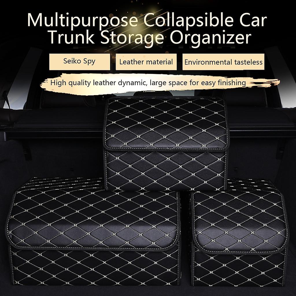 Features: Made of premium quality PU leather, it has a beautiful look and superior finish. It is highly durable, abrasion and scratch resistant. Broad bottom ensures stability and sturdiness. Foldable Space Saving Design.This multipurpose trunk organizer box keeps your car clutter-free and your things well organized. It's very easy to expand and within a minute you are ready to keep your things and groceries in an arranged fashion. Also, the for Sticker straps hold it in closed position when not in use. Waterproof, Easy To Clean.This collapsible car trunk organizer is made of waterproof material and keeps your items well protected against splashes and moisture. It is very easy to clean, just wipe it with a rag and get it clean like new. Keeps Your Vehicle Well Organized, Neat And Clean.This trunk organizer is very useful in saving your precious storage space and is suitable for a wide range of vehicles viz. car, sedan, SUV as well as for other outdoor and home usage. Modern And Fashionable NON-SLIP Design.Easily store your shopping items, groceries etc. and prevent them from rolling here and there and moving all over the trunk. Unfolding and folding is a breeze. It is a very useful product that meets the needs of day to day life. Specifications: Material: PU Color: As the picture shown Size: S: Length: 30cm(11.81in) ,Wide: 30cm(11.81in), High: 30cm(11.81in) M:Length: 40cm(15.75in) ,Wide: 30cm(11.81in), High: 30cm(11.81in) L: Length: 55cm(21.65in) ,Wide: 30cm(11.81in), High: 30cm(11.81in) Quantity:1Pc Note: 1.Transition: 1cm=10mm=0.39inch 2.Please allow 0-3cm error due to manual measurement. pls make sure you do not mind before you bid. 3.Due to the difference between different monitors, the picture may not reflect the actual color of the item. Thank you Package includes: (Without retail package) 1Pc x Car Trunk Storage Organizer