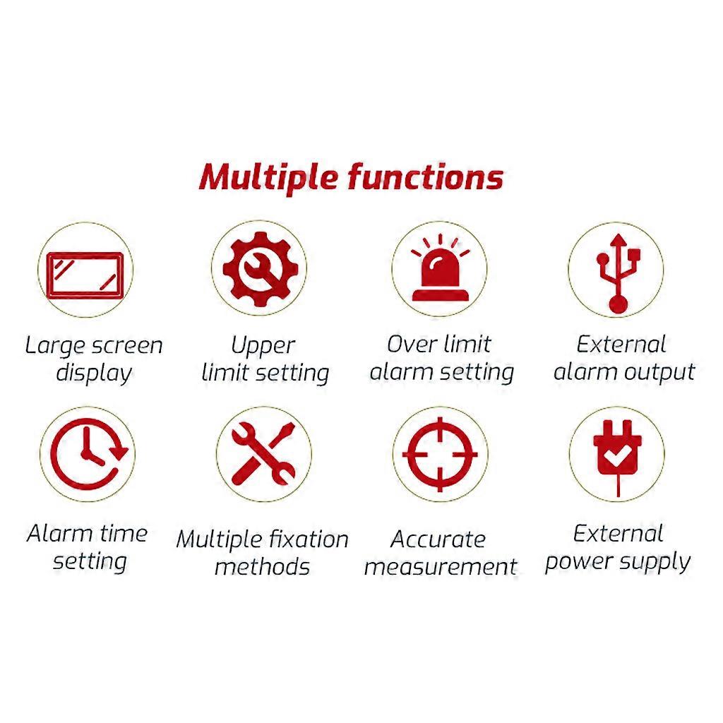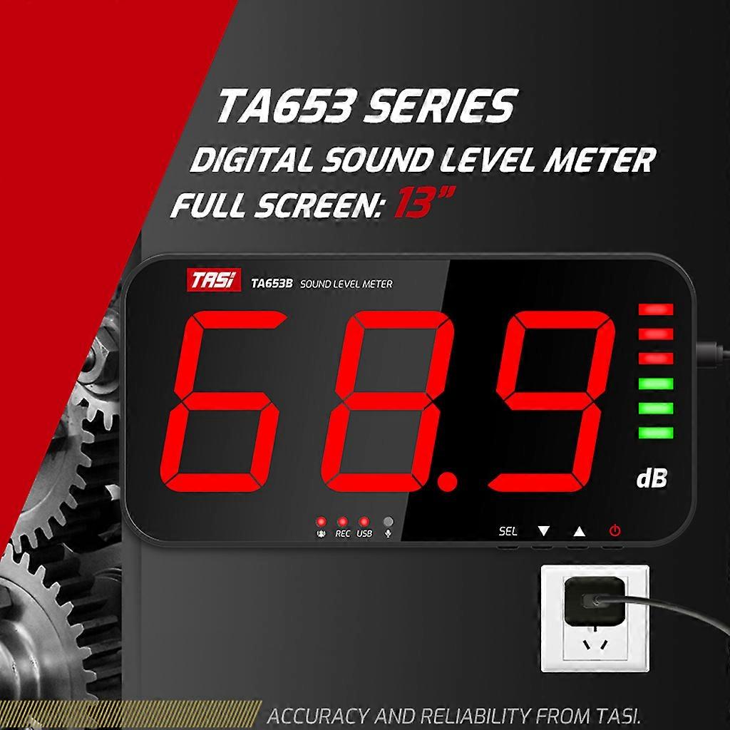 Large Screen Display Noise dB Meter Wall Hanging Sound Level Meter Monitor USB data transmission audio meter 32x17cm Multifunction: USB Connect to computer Large screen display Upper limit setting Over limit alarm setting External alarm output Alarm for time setting Multiple fixation methods Accurate measurement External power supply Parameters: Measurement range:30dB~130dB Accuracy:1.5dB Measurement range:31.5Hz~8.5KHz Frequency weighting:A Weight Response time:Fast,about 2times/seconds Sensor tvpe: 6mm capacitive microphone sensor Digital display: 3digits Resolving power: 0.1dB(100dB) Alarm mode: sound + display Alarm output: 5v high level Refresh rate Storage function: 2 times /seconds Computer Communication:YES Power supply: 5V 1A MicroUSB interface Working temperature and humidity: 0-40C , 10-80%RH Storage temperature and humidity: 0-40C , 10-80%RH Over range display:op digit shows "Hi" or "Lo" Product power supply: AC input, output 5V 1A adapter Product size: 323 x 173 x 40mm (12.71 x 6.for 81 x 1.57in) Product weight:about 980g Package included: 1x GIFT BOX 1x HOST 1x ENGL/SH INSTRUCTION 1x POWER USB 2x HANG/NG HOOK 2x SCREW
