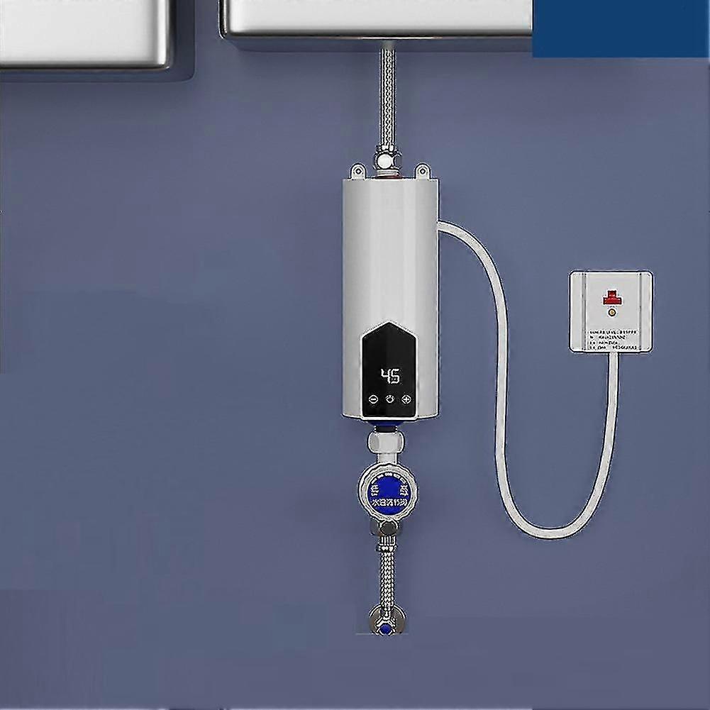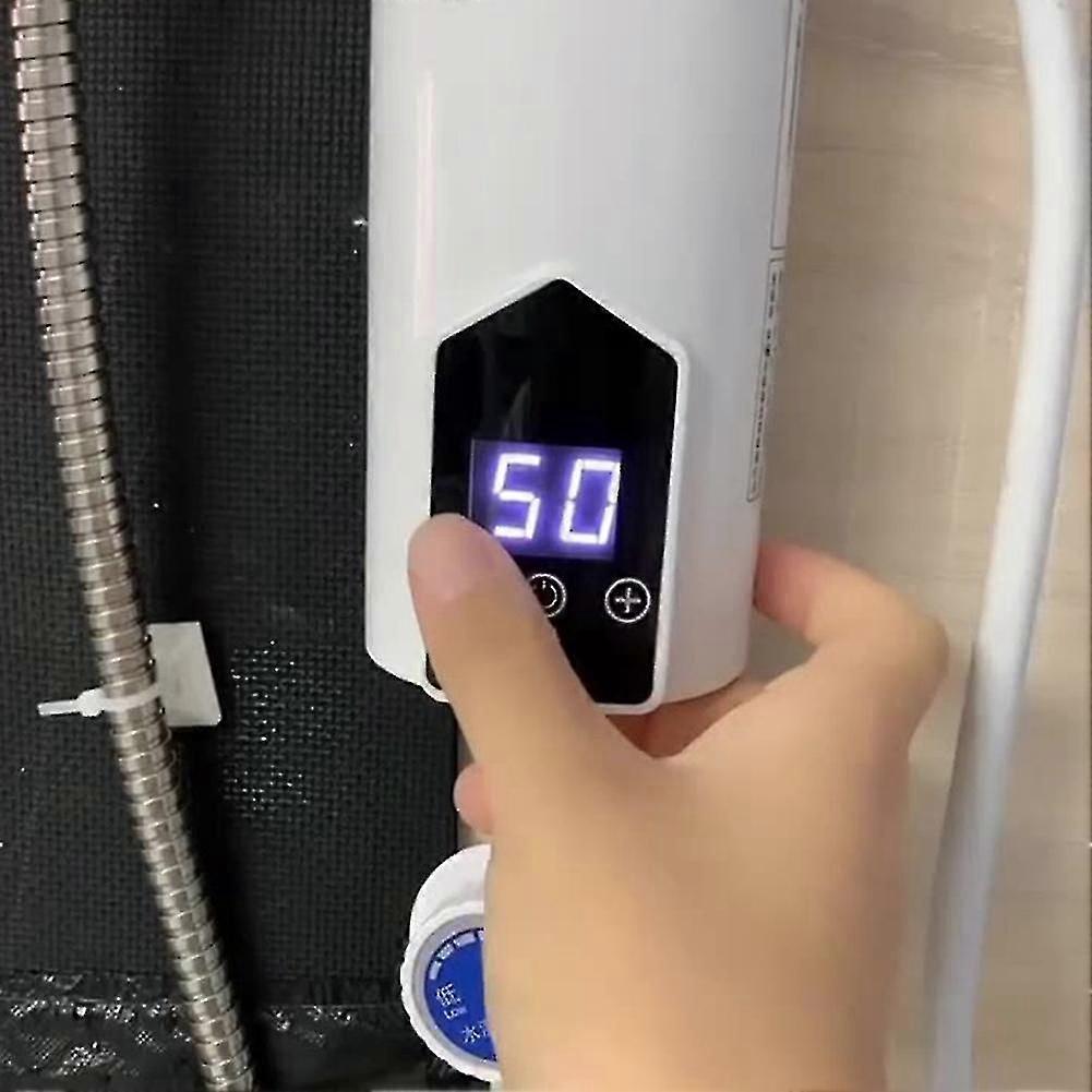That is the hot: Without water preheating. How much water, how much electricity. 't have to repeatedly heat insulation, waste not Constant temperature water: Take a comfortable shower. Fast heating, thermal core temperature continue to supply you , refused to hot and cold 5500 w power 88% of the output rate of hot water: Strengthen the stainless steel heater, water to the hot, continuous supply of hot water Time the temperature display: With more peace of mind. Temperature display for real-time dynamic visible when using temperature is more at ease Water and electricity separate. Security is a kind of responsibility. Internal electric protection wall design hydropower is not same, prevent water leakage Style: vertical Maximum volume: 300mL Energy efficiency class: III Heating power (KW): 2.1kW (included) - 5kW (excluded) Installation requires proper grounding and mobile socket is prohibited Heating power: 5500 Net weight: 1.4 (KG) Control mode: Mechanical Appearance size 21 x 11 x 27cm Whether the faucet can rotate Tap style single handle single hole Plug Type:EU Plug,it applies to Indonesia, , , , and so on Voltage: AC220V color:White :ABS+stainless steel Package Contents: 1 x water heater 1 x water flow regulating valve 1 x isolation wall 1 x water inlet hose 1 x tee 1 x installation-free perforated sticker 1 x leakage protection switch 1 x English instruction manual Only the above package content, other products are not included. Note: Light reflection and different displays may cause the color of the item in the a little different from the real thing. The measurement allowed error is +/- 1-3cm.