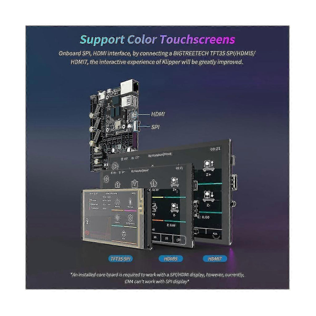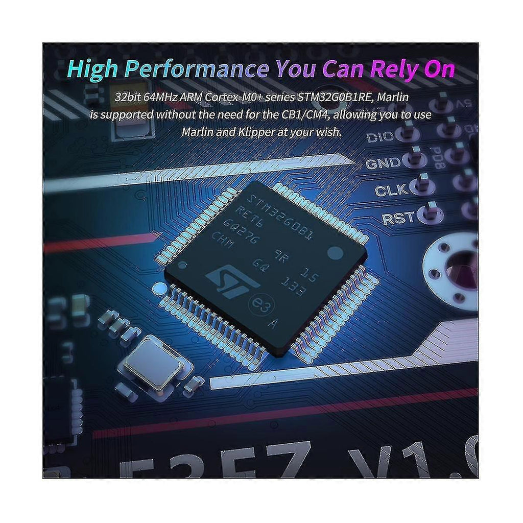 1.32bit 64MHz ARM -M0+ series STM32G0B1RE MCU. 2.TPS5450-5A power supply chip supports DC12/24V power input, current output rated at 5A max continuous and 6A max instantaneous, sufficient power supply for . 3.The thermistor circuit is to prevent MCU damage from shorted heated bed and heater connections. 4.MCU firmware can be upgraded via SD card, or use DFU via Klipper's make flash . 5.BTB connectors are adopted between the motherboard and core board, allowing the choice of other core board solutions in addition to CM4. 6.Onboard SPI and UART mode of EZ driver, which can be used directly without a jumper. 7.Onboard DIAG pin, configurable with . 8.Support power loss , filament runout sensor, auto power-off, BLTouch, RGB, etc. 9.High-efficiency MOSFET for less heat generation. 10.Replaceable fuse for easy maintenance. 11.Onboard SPI interface for connecting acceleration sensor to enable Klipper's input shaping. 12.The temperature sensor interface adopts a high-precision pull-up resistor. 13.Each motor driver module can select the corresponding motor by jumper caps. 14.The motor power supply supports up to 56V, and for the larger when using EZ5160, an isolation chip is used to the main control from burning IO. MANTA E3EZ V1.0 is a 32-bit motherboard. It is compatible with motherboard mounting holes. Simply plug in the core board, and your will be to run Klipper, greatly eliminating the wiring between the motherboard and for , and also greatly saving space in the chassis. The BTB headers are designed on MANTA E3EZ V1.0, so that customers can to use CM4 or other solutions, thus solving the insane shortage of for CM4. Colour:Black Material:Plastic + metal Package Contents: 1 x Manta E3EZ Board Only theabove package content, other products are not included.Note: Light reflection and different displays may cause the color of the item in the a little different from the real thing. The measurement allowed error is +/- 1-3cm.