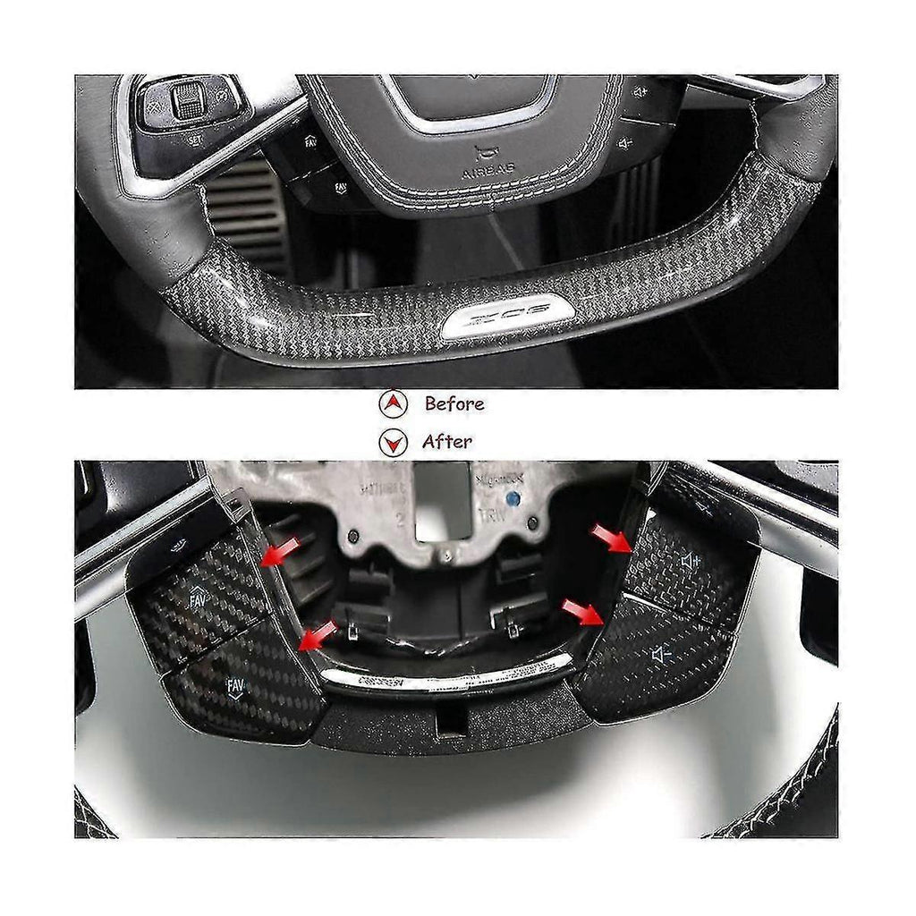 color: red carbon fiber pattern material: carbon fiber Suitable for: C8 2020-2023 Installation Clean the area and eliminate any impurities mounting this item. heat the tape backing with a heat for better stickup effect. Package Contents: 1 set Steering Wheel Panel Cover Only the above package content, other are not included. Note: Light reflection and different displays may cause the color of the item in the a little different from the real . The measurement allowed is +/- 1-3cm.