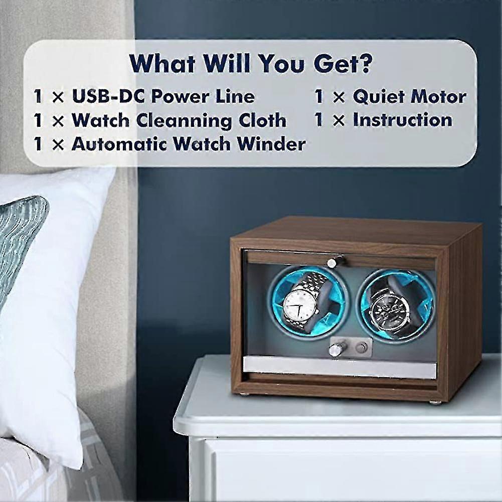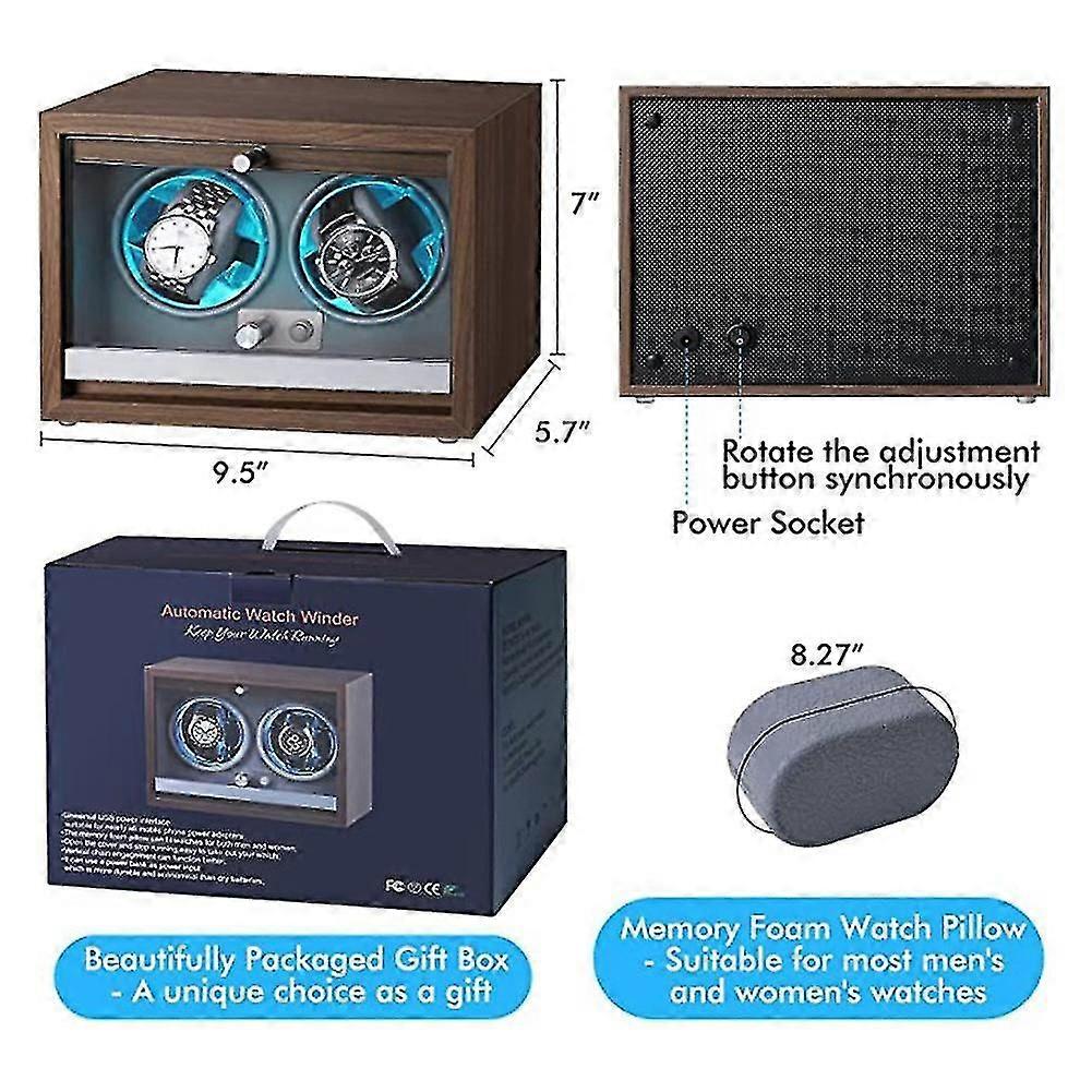 LED Light: Blue LED light, soft light is not dazzling, quiet and elegant like the in the dark night. Ultra-quiet Motor: Silent motor with planetary gear movement, more durable, lasting power, quieter operation Open the Window and Stop: Easy to take and place the watch. Three-layer anti-magnetic design, safe and non-magnetic without hurting the watch.Multi- Mode 0: Switch. Gear 1: Forward for 2 minutes, stop for 6 minutes, and repeat the ; Gear 2: Reverse for 2 minutes, stop for 6 minutes, and repeat the ; Gear 3: Forward for 2 minutes, stop for 6 minutes, reverse for 2 minutes, stop for 6 minutes, and repeat the ; Gear 4: Forward for 5 minutes, reverse for 5 minutes, continue for 3 hours, stop for 9 hours, and repeat the . Memory Foam Watch Pillow The memory foam watch pillow has a light floral and strong elasticity, suitable for most men's and women's watches Single Watch Winder Size:5.7 x 5.5 x 6.7 inch Double Watch Winder Size:9.5 x 5.7 x 7 inch : ABS+MDF colour: grey Package Contents: 1 x watch winder Only the above package content, other products are not included. Note: Light reflection and different displays may cause the color of the item in the a little different from the real thing. The measurement allowed error is +/- 1-3cm.