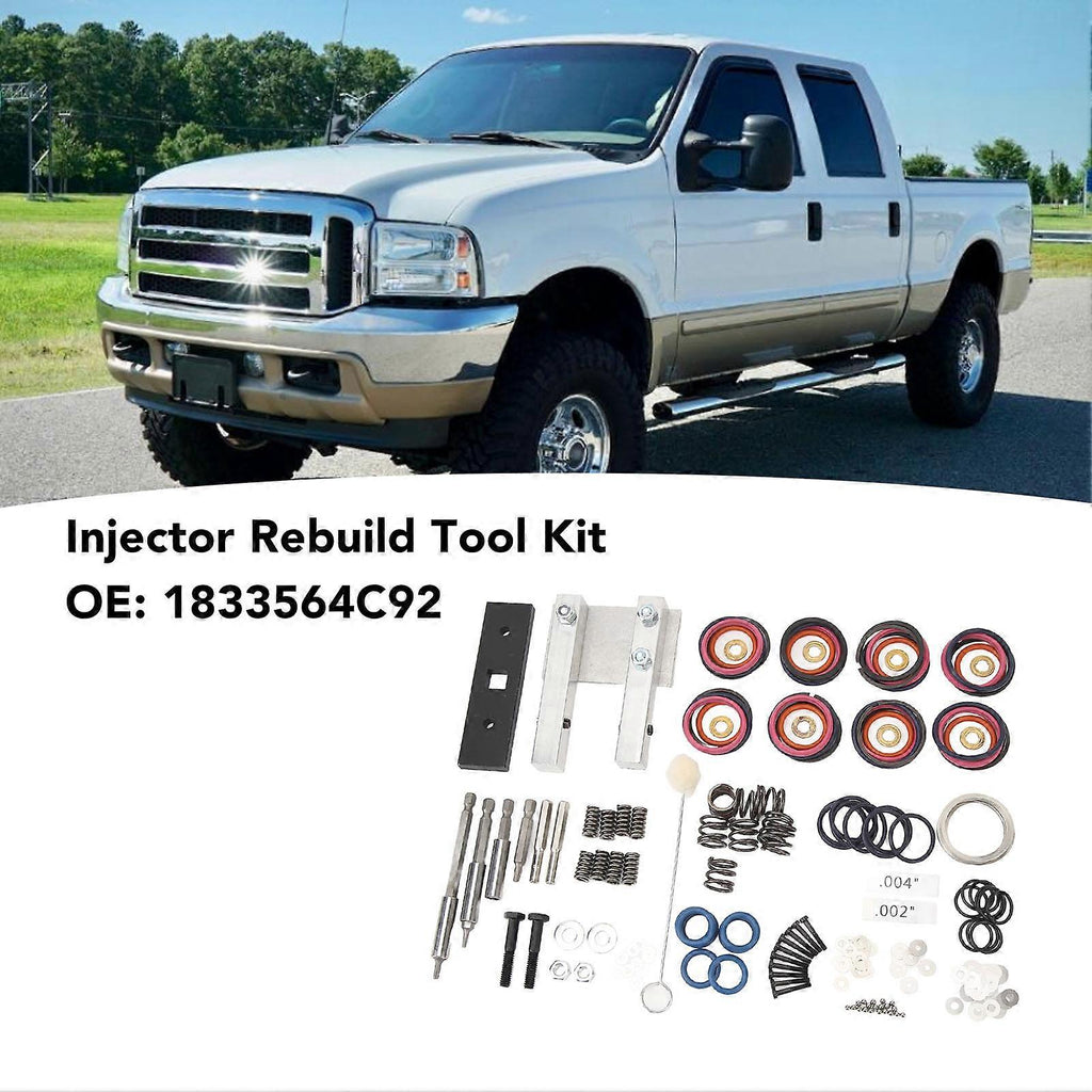 Features 1.Compatibility: Fit for Powerstroke 7.3L, for Navistar T444E, DT466E and for Caterpillar 3126, 3126B, 3126E Diesel Engines 19942003. Works on most for HEUI injectors. 2.OE Number: The replacing manufacturer part number for reference is 1833564C92. Easy solution to hard start in cold without removing the injector. 3.Function of Stainless Steel Washers: If the clearance between your armature plate and adapter plate is causing cold start issues, you can install the washers to increase the clearance back to .004in to .005in. 4.Purpose of Solenoid Spacer Shims: Placed solenoid shims under all four corners of the solenoid (for a total of .005in), to increase the solenoid to armature clearance to near factory specs, when solenoid is energized. 5.Restored Injector Performance: The high strength metal and rubber material used in this kit protects the injectors from dirt, oil, and grease that could potentially degrade their performance. Specification Item Type: Injector Rebuild Tool Kit Material: Metal + Rubber OE: 1833564C92 This injector rebuild kit contains everything you need to rebuild all 8 injectors of a for HEUI injector. Kit includes gaskets (.002in /.004in), DPS0010 screws, IP15 screw, T10 screw, gauge (.002in /.004in), injector O ring seal kit, vice clamp and stainless steel support ring. Easy solution to hard start in cold without removing the injector. Applicable: Fit for Powerstroke 7.3L, for Navistar T444E, DT466E and for Caterpillar 3126, 3126B, 3126E Diesel Engines 1994-2003 Fit for F-Series 7.3L 1994-2003 Fit for E-Series 7.3L 1994-2003 Fit for Excursion 7.3L 1994-2003 Package List 1 x Injector Rebuild Tool Kit (243pcs) Note Please double check the part number of your item, matching information is for reference only.
