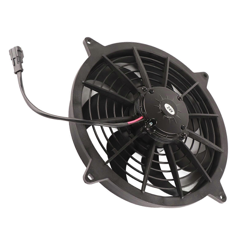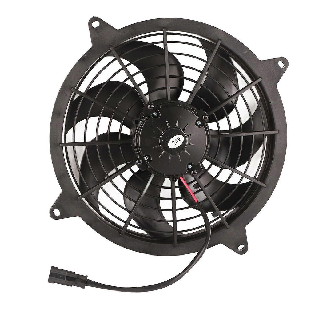 Features: 1.Function: Fan improve heat dissipation throughout the engine compartment, including the radiator, air conditioning system, intercooler, oil system and transmission. 2.7 Blades: 160W power and 24v voltage, 7 blades design making you have a cool and comfortable experience. 3.Compact Design: The compact design makes the fan ideal for installation in tight areas and provides excellent compartment clearance. 4.Excellent Features: : Powerful cooling performance and low noise, stable and reliable, widely used in trucks, buses. 5.Fan Blade Performance: The unique fan blade design allows you to pull or push air at the same speed, dependable and practical. Specification: Item Type: Truck Air Conditioner Cooling Fan Material: ABS and iron Color: Black Round Frame Diameter : Approx: 318mm/12.51in Blade Type: Curved blades 7 blades wind absorption Power: 160W Voltage: 24V Applications: Buses, trucks