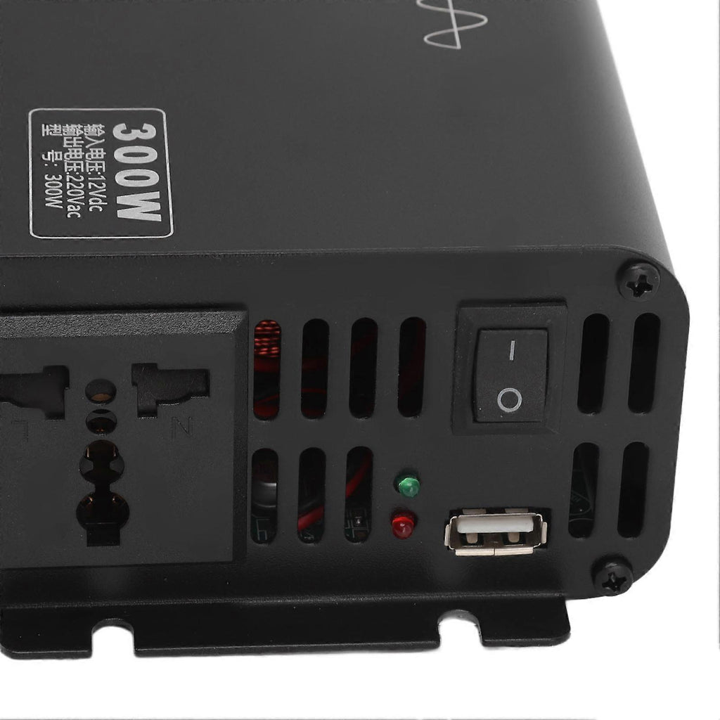 Item Type: Power InverterMaterial: Aluminium Mg alloyGross Weight: 1149g / 40.5ozSize: 20.4x11x6CM / 8.0x4.3x2.4inOutput Power: 300WOutput Frequency: 50HZOutput Waveform: Pure sine waveApplication: Applicable to cars wind power generation solar power generation household power generation pollution free power generation etc.Common problems and solutions:The inverter indicator does not work when the electrical appliance does not work.Battery damage: check the battery and replace it.Reverse connection of storage battery: check whether the connection between storage battery and inverter is correct.The connection is not tightened: check the connection between the cable and the inverter and tighten the battery terminal.If the automobile cigarette lighter is used the maximum power of the electric appliance shall not exceed 150W.