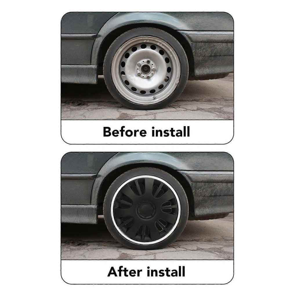 4 Pcs 14 Inch Automobile Hubcap Matte Black Wheel Wrap Rim Protector Cover Trim for Cars Trucks Vans