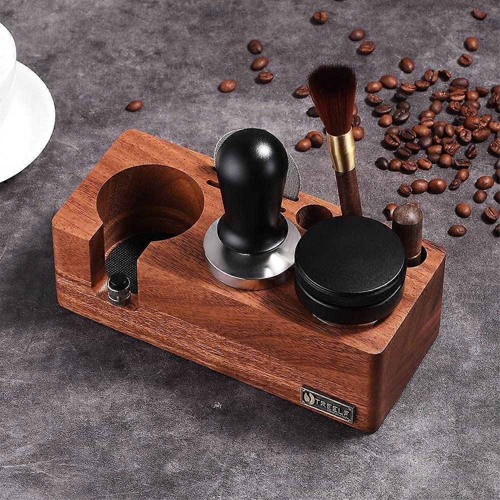 Features: 1Espresso Tamping Station - This 6-piece set of solid walnut espresso tamping station is designed for coffee enthusiasts who appreciate the art of making the perfect cup of espresso. With a height-adjustable silicone non-slip mat and nut, this multifunctional home accessory ensures stability while providing a convenient storage solution for your espresso tamper, coffee tamper stand, and other essential accessories. 2Tidy and Organized - Say goodbye to cluttered countertops with this Espresso organizer station. Each component of this kit, including the Espresso tamper, coffee tamper stand, coffee distributor, coffee stirrer, cleaning brush, and puck screen, fits snugly into its designated slot, allowing you to keep your coffee tools neatly organized and easily accessible. 3Precise Espresso Extraction - Achieve consistent results every time with the help of this Espresso tamping station. The ergonomic design of the tamper handle provides a comfortable grip, while the sturdy base ensures even pressure distribution when tamping. Whether you prefer a 54mm or 58mm tamper for Optional, this kit has got you covered for a precise and satisfying espresso extraction. Specification: Features: Espresso Tamping Station - This 6-piece set of solid walnut espresso tamping station is designed for coffee enthusiasts who appreciate the art of making the perfect cup of espresso. With a height-adjustable silicone non-slip mat and nut, this multifunctional home accessory ensures stability while providing a convenient storage solution for your espresso tamper, coffee tamper stand, and other essential accessories. Tidy and Organized - Say goodbye to cluttered countertops with this Espresso organizer station. Each component of this kit, including the Espresso tamper, coffee tamper stand, coffee distributor, coffee stirrer, cleaning brush, and puck screen, fits snugly into its designated slot, allowing you to keep your coffee tools neatly organized and easily accessible. Precise Espresso Extraction - Achieve consistent results every time with the help of this Espresso tamping station. The ergonomic design of the tamper handle provides a comfortable grip, while the sturdy base ensures even pressure distribution when tamping. Whether you prefer a 54mm or 58mm tamper for Optional, this kit has got you covered for a precise and satisfying espresso extraction. Easy to Clean - Cleaning up after enjoying your daily Espresso ritual is a breeze with this Espresso accessories kit. The included cleaning brush effortlessly removes any residual coffee grounds, while the detachable components can be quickly rinsed under running water. Maintain hygiene and prolong the lifespan of your espresso tools with ease. Versatile and Stylish - Not only does this Espresso station enhance the functionality of your coffee brewing routine, but it also adds an elegant touch to your kitchen decor. Crafted from high-quality walnut wood, this espresso tamping station exudes timeless sophistication and complements any interior style. Elevate your coffee experience with this versatile and stylish addition to your home. Specification: Product material: Walnut wood Product size: (54mm) 22 x 9.7 x 7cm / 8.66 x 3.82 x 2.76in, (58mm) 24 x 9.7 x 7cm / 9.45 x 3.82 x 2.76in (Optional) Product color: Brown Application: Suitable for storage coffee tamper, coffee distributor, Espresso coffee brewing basket Packing List: 1 x Tamper Station 1 x Tamper 1 x Cleaning Brush 1 x Distributor 1 x Coffee Stirrer 1 x Puck Screen Package List: 1 x Tamper Station 1 x Tamper 1 x Cleaning Brush 1 x Distributor 1 x Coffee Stirrer 1 x Puck Screen