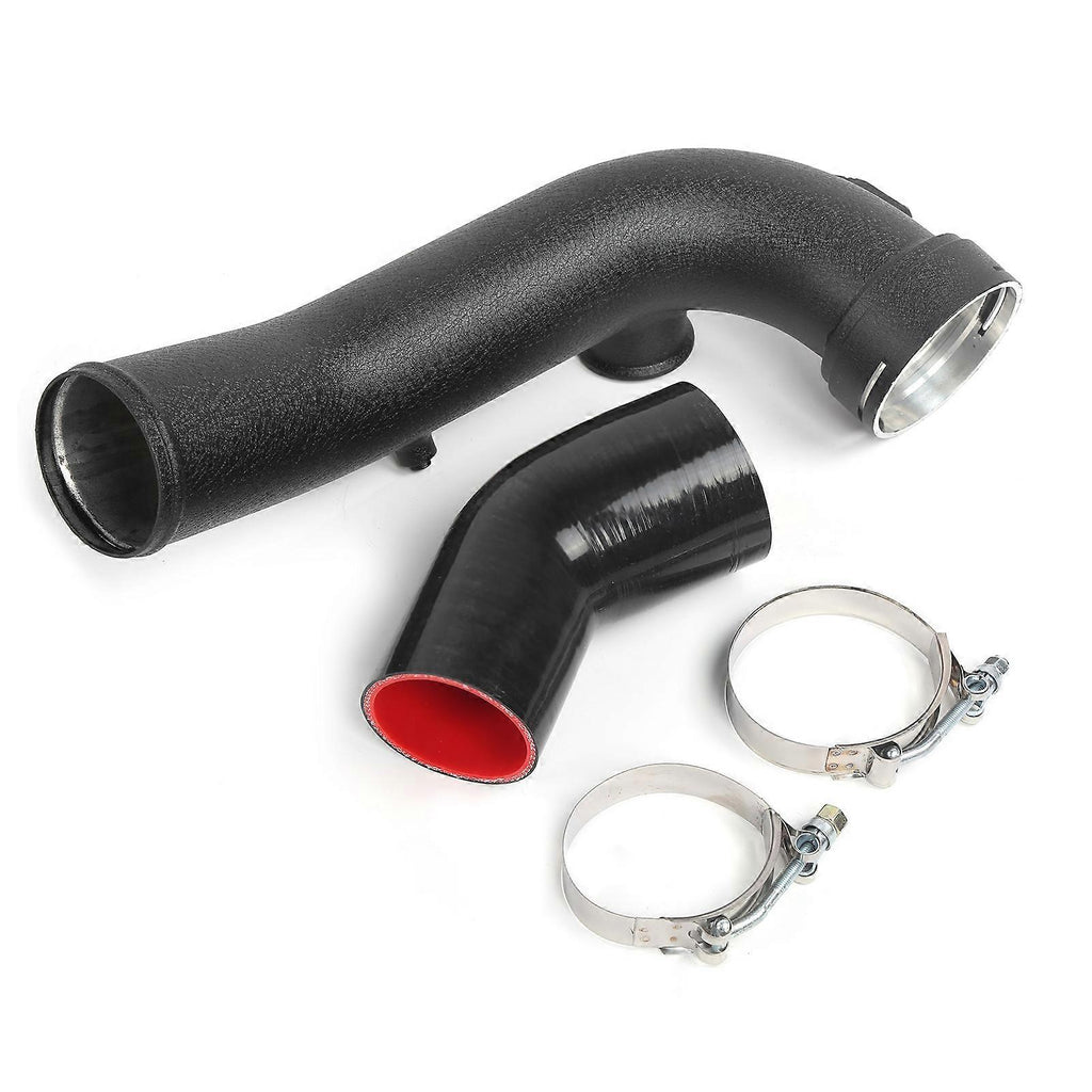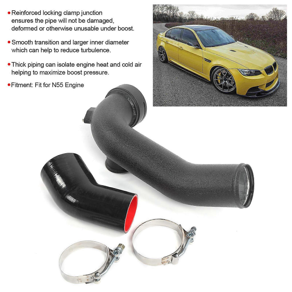Features: 1.Mandrel bent design, formed from aluminum alloy, which will not bend under high boost pressure. 2.The smooth transition and larger inner diameter can help reduce turbulence, reliable to use. 3.Reinforced locking clip junction, ensures the pipe will not be damaged, deformed or otherwise rendered inoperable under boost. 4.Thick aluminum alloy piping can isolate engine heat and cold air, helping to maximize boost pressure. 5.Simple installation, no need to permanently modify any connecting parts, making the installation reversible. Specification: Item Type: Air Intake Turbocharge Pipe Kit Material: Aluminum Alloy, Silicone Pipe Color: Black Fitment: Fit for N55 Engine PackageList: 1 Set of Turbocharge Pipe Kit (4pcs) Note: Replace the original narrow plastic piping, professional installation is highly recommended (No instruction included)