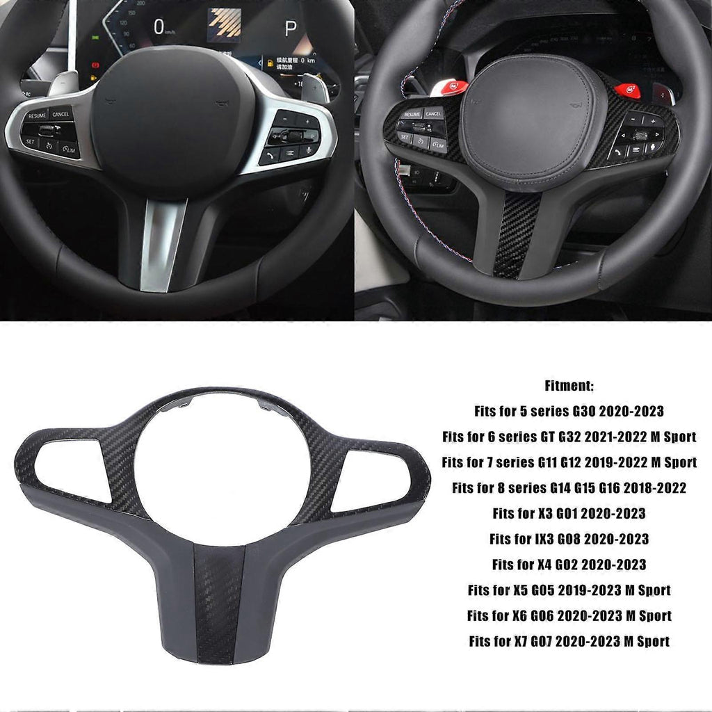 Features 1.Applicable Model: The steering wheel cover is a replacement for 5 6 7 8 Series G30 G32 G11 G14, please check the model of your vehicle before ordering to confirm compatibility. 2.Enhanced Protection: Apart from protecting the installation area from scratches, it decorates the vehicle's interior, offering a tailored driving experience with its stylish design. 3.Sporty and Stylish Design: The dry carbon fiber trim gives a fashionable and sporty touch to your car, enhancing the overall aesthetics. 4.Durable and Resistant: Made from premium dry carbon fiber and Nappa leather, produced through a precision process, this cover is designed for enduring durability, heat resistance, color fastness. 5.Seamless Integration: This steering wheel cover can easily replace the existing cover, thus providing a precise fit and seamless integration with your vehicle's interior. Specification Item Type:SteeringWheelCovers Material:CarbonFiber,NappaLeather Finish: Glossy 3K twill Style: Sporty On Board System Version: ID7 Installation: Replacement Fitment: Fits for 5 series G30 2020-2023 Fits for 6 series GT G32 2021-2022 M Sport Fits for 7 series G11 G12 2019-2022 M Sport Fits for 8 series G14 G15 G16 2018-2022 Fits for X3 G01 2020-2023 Fits for IX3 G08 2020-2023 Fits for X4 G02 2020-2023 Fits for X5 G05 2019-2023 M Sport Fits for X6 G06 2020-2023 M Sport Fits for X7 G07 2020-2023 M Sport Package List 1 xSteeringWheelFrame Trim