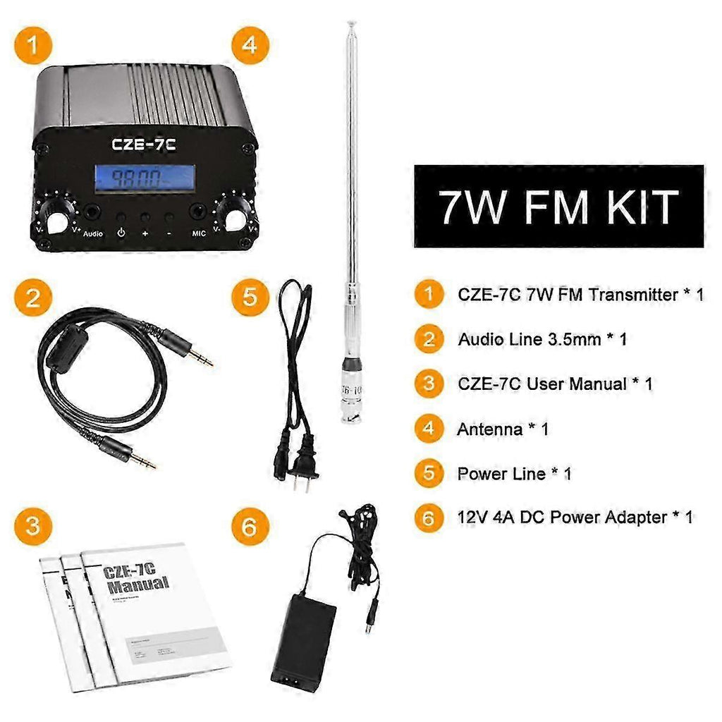 Cze-7c 7w Fm Transmitter for Radio Broadcasting for Church Professional 7 Watt Fm Broadcast Transmitter Kit -US Plug