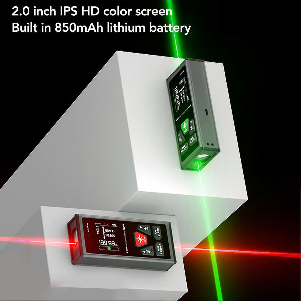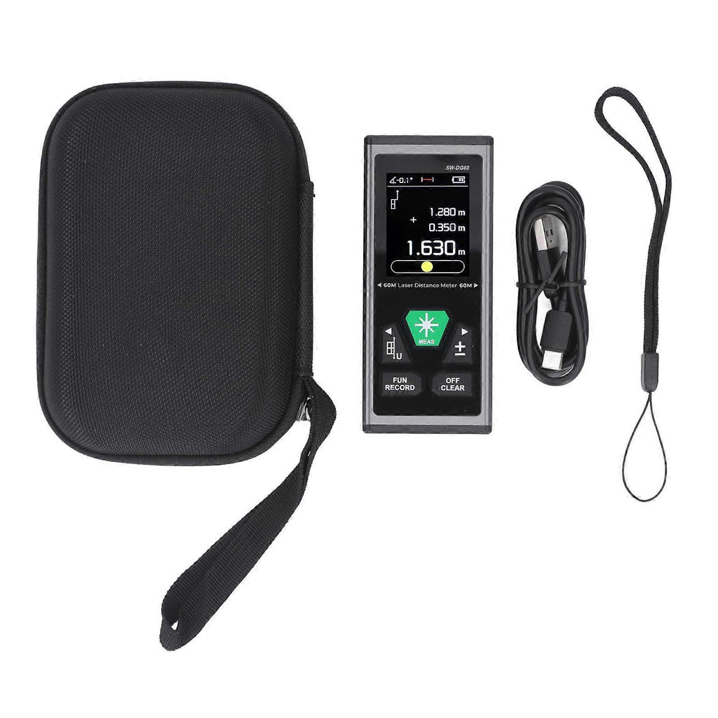 Features: 1Infrared Measurement: Laser distance meter adopts advanced infrared measurement technology, high accuracy, accurate and reliable measurement results. 2Bidirectional: Digital laser distance meter is equipped with bidirectional laser, which is easy to measure in different environments and has a wide range of applications. 3Compact and Portable: Dual laser distance meter adopts humanized design, easy to carry and operate, easy to realize various measurement tasks. 4Multifunctional Design: Digital laser measurement tool has a multifunctional display, intuitively displaying the measurement data, which is convenient for users to consult at any time. 5Durable and Reliable: Laser distance measuring device is made of durable material and carefully crafted to ensure long service life and stable and reliable performance. Specification: Item Type: Laser Distance MeterProduct Material: ABS, PC, Aluminum AlloyMaximum Measuring Distance: 60m (One Way), 120m (Two Way)Inclination Measuring Range: 90Distance Measurement Accuracy: (2mm + d x one in ten thousand) x (unidirectional)Laser Class: IILaser Type: 630-670nm, <1mWStorage Record Number of Strokes: 100 StrokesAuto Cut Off Laser: 20 SecondsAutomatic Shutdown: 180 SecondsBacklight Time: 60 SecondsBattery: 3.7V 850mAh Polymer Lithium Battery (Shipped with Built in Lithium Battery)Charging Time: About 1.5 HoursCharging Specification: DC5V 0.75A Type CFull Charge Operating Time: 8000 Times in One Way, 5000 Times in Two WayStorage Temperature Range: -20C to 60COperating Temperature Range: 0-40Storage Humidity: 20%-80%RHSize: Approx. 115x50x24.5mm / 4.5x2.0x1.0in Gross Weight: 330g/11.6oz Package List: 1 x Distance Meter1 x Charging Cable1 x Lanyard1 x Storage Bag1 x English Manual Note: All data are measured manually, and there are certain errors in the measurement results.