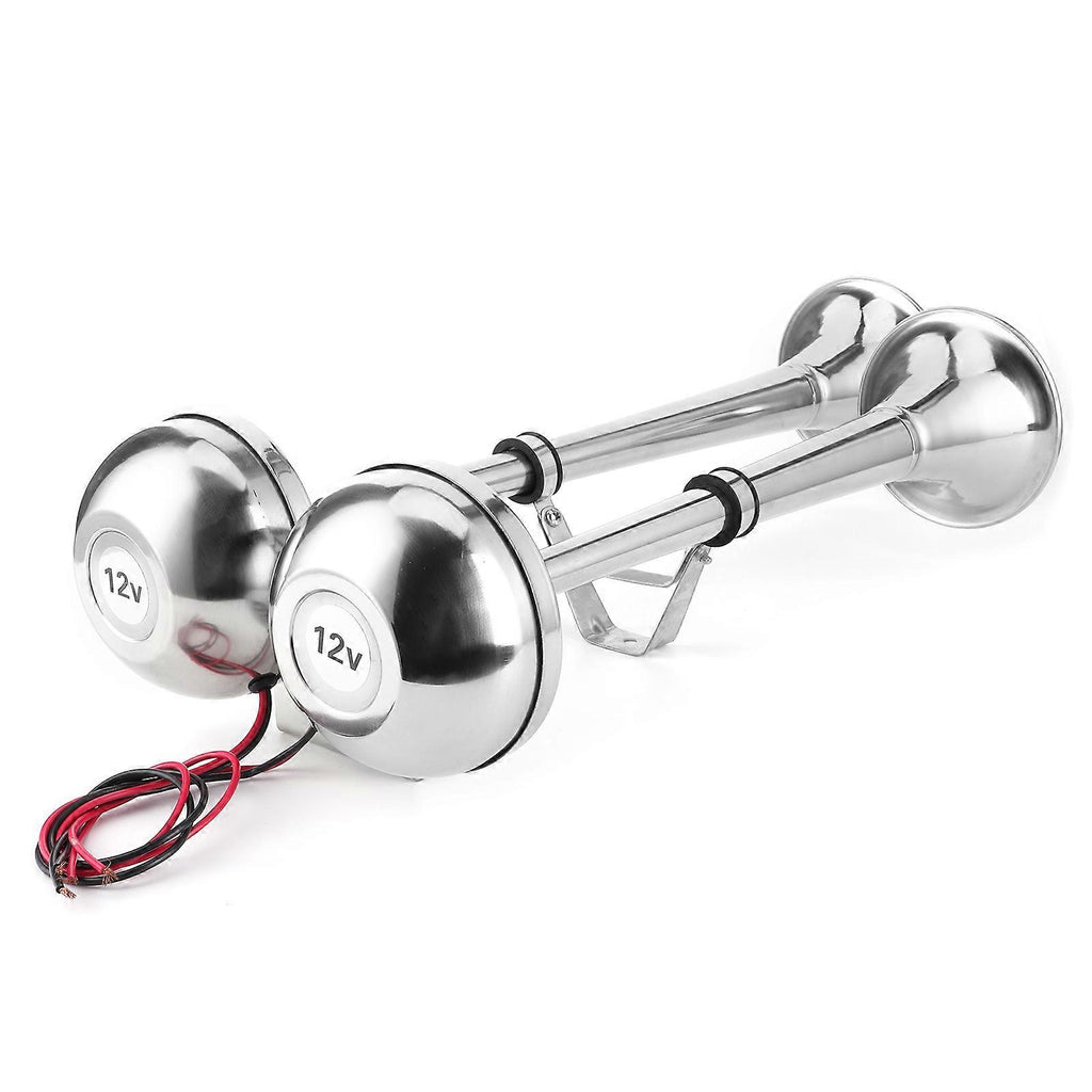 2.Dual trumpet air horn, directly connect to the power supply to use, fits for all vehicles and ships with air source equipment.