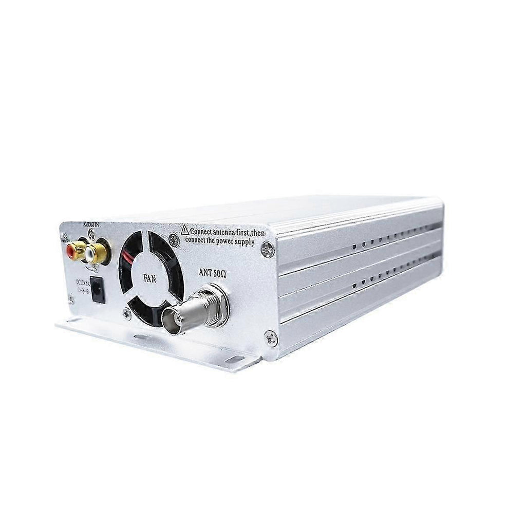 1.76-108mhz Operating Frequency2. Lcd Display, Blue Background Light3. One-Way Audio Source Input (Audio+Mic), The Volume Of The Two Inputs Is Adjustable4. Automatically Save The Working Frequency, And When It Is Turned On, It Will Automatically Jump To The Working Frequency Before The Last Shutdown.5. Pll Professional Phase Locked Loop, Frequency Non-Drift Frequency Machine1. Power Supply Voltage: 12V/5A2. Frequency Range: 76-108Mhz3. Frequency Step Value: 100Khz4. Frequency Stabilization : Pll Phase-Locked Loop Frequency Synthesis5. Frequency Stability: 10ppm (-10+60C)6. Modulation Frequency Deviation: 75kHz ()7. Working : Continuous Working8. Rf Output Impedance/Power: 50/15W9. Reference Operating Distance: 2Km-10Km (Open Land)10. Overall Machine Size: About 180 x 120 x 45mm(Length*Width*Height)11.Colour:silver white12.Material:ABSPackage Contents:1 x FM TransmitterNote:Different Batches May Have Differences In Product Appearance, Color, And Printed Characters, Which Will Not Affect The UseOnly the above package content, other products are not included.Note: Light reflection and different displays may cause the color of the item in the picture a little different from the real thing. The measurement allowed error is +/- 1-3cm.