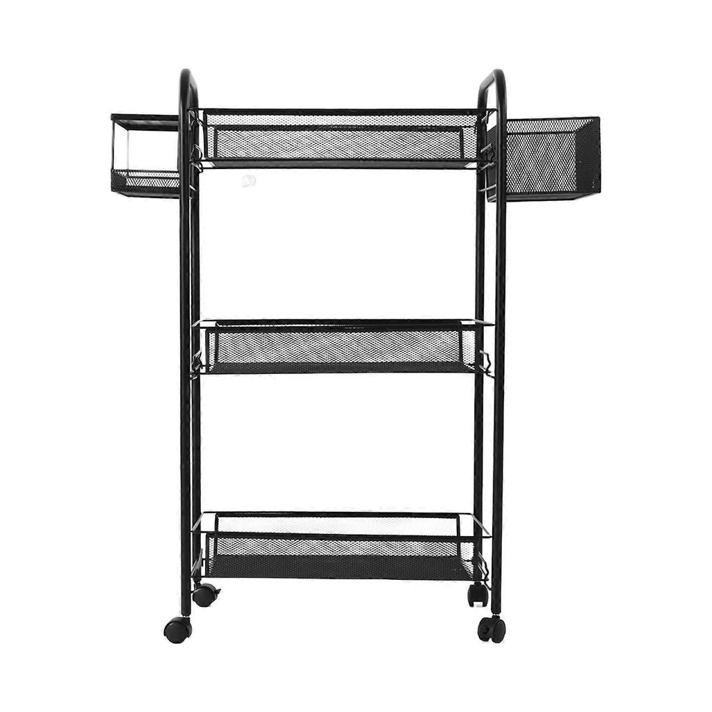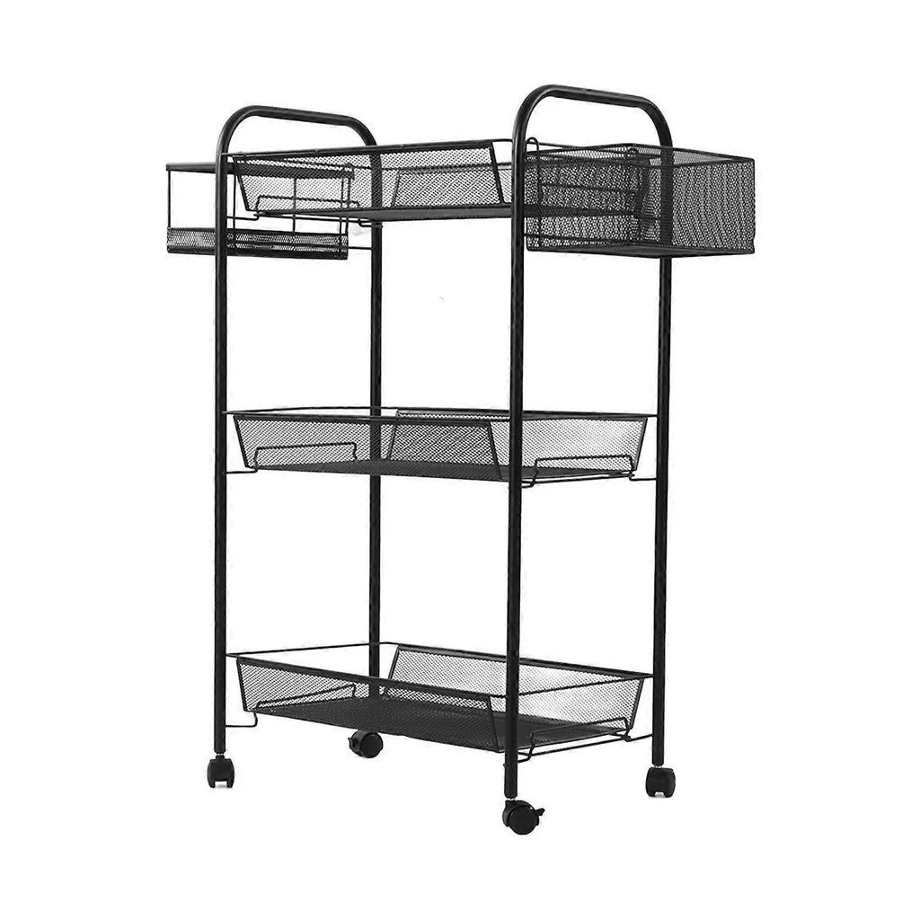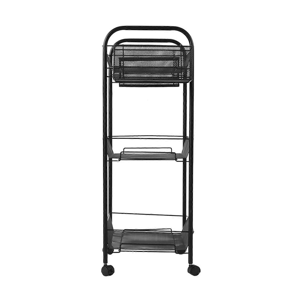 Metal Shelves Portable 3 Layers Black Pantry Organizer Bottom Pulley Storage Equipment for Bedroom Kitchen