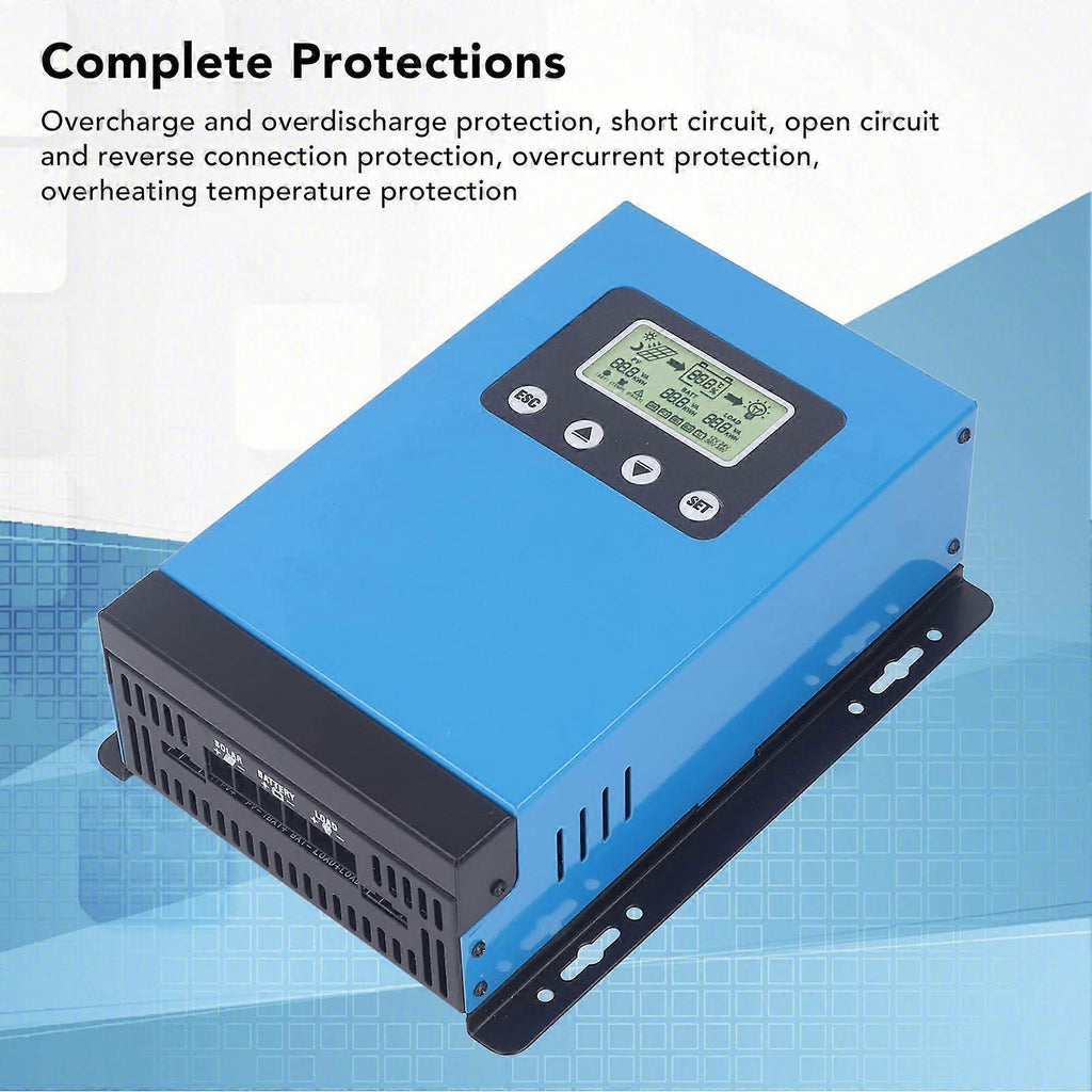 Features 1MPPT CHARGE CONTROLLER: This MPPT solar controller adopts MPPT technology with a tracking efficiency of up to 99% and a peak conversion efficiency of up to 98%. Can automatically identify 12V 24V 36V 48V systems. 2BATTERY COMPATIBILITY: The solar charge controller supports various battery types, including acid batteries, LFP batteries, LiNiC batteries. Default setting is acid battery. 3PROGRAMMABLE LCD DISPLAY: The main parameters can be easily programmed and monitored through the LCD display. The clear backlit LCD screen ensures a more precise and user friendly operation. 4EFFICIENT HEAT DISSIPATION: With a pure aluminum alloy casing and a multi edged design, this solar controller offers excellent heat dissipation, ensures long term work safety. 5COMPREHENSIVE PROTECTION: Featuring multi protections including overcharge, overdischarge, short circuit, open circuit, reverse polarity, overcurrent, over temperature protection. This solar controller ensures the safety and longevity of your solar power system. Specification Item Type: MPPT Solar Charge ControllerMaterial: Aluminum AlloySystem Voltage: 12V 24V 36V 48V AutoNo Load Loss: 0.4WSolar Energy Maximum Input Voltage: 180V (25), 150V (-25)Battery Voltage: 9-64VMaximum Power Point Voltage Range: Battery Voltage+2V to 150VConversion Efficiency: 98%MPPT Tracking Efficiency: >99%Temperature Compensation Coefficient: -2mv//2V default valueWorking Temperature: -10 to 65Protection Grade: IP21Battery Compatibility: In Accordance With EN61000, EN55022, EN55024Communication Method: Rs485 OptionalAltitude: 3000mRated Charging Current30A40ABattery Panel Maximum Input Power360W/12V, 720W/24V, 1080W/36V, 1440W/48V480W/12V, 960W/24V, 1440W/36V, 1920W/48V Package List 1 x MPPT Solar Charge Controller4 x Screw4 x Anchor