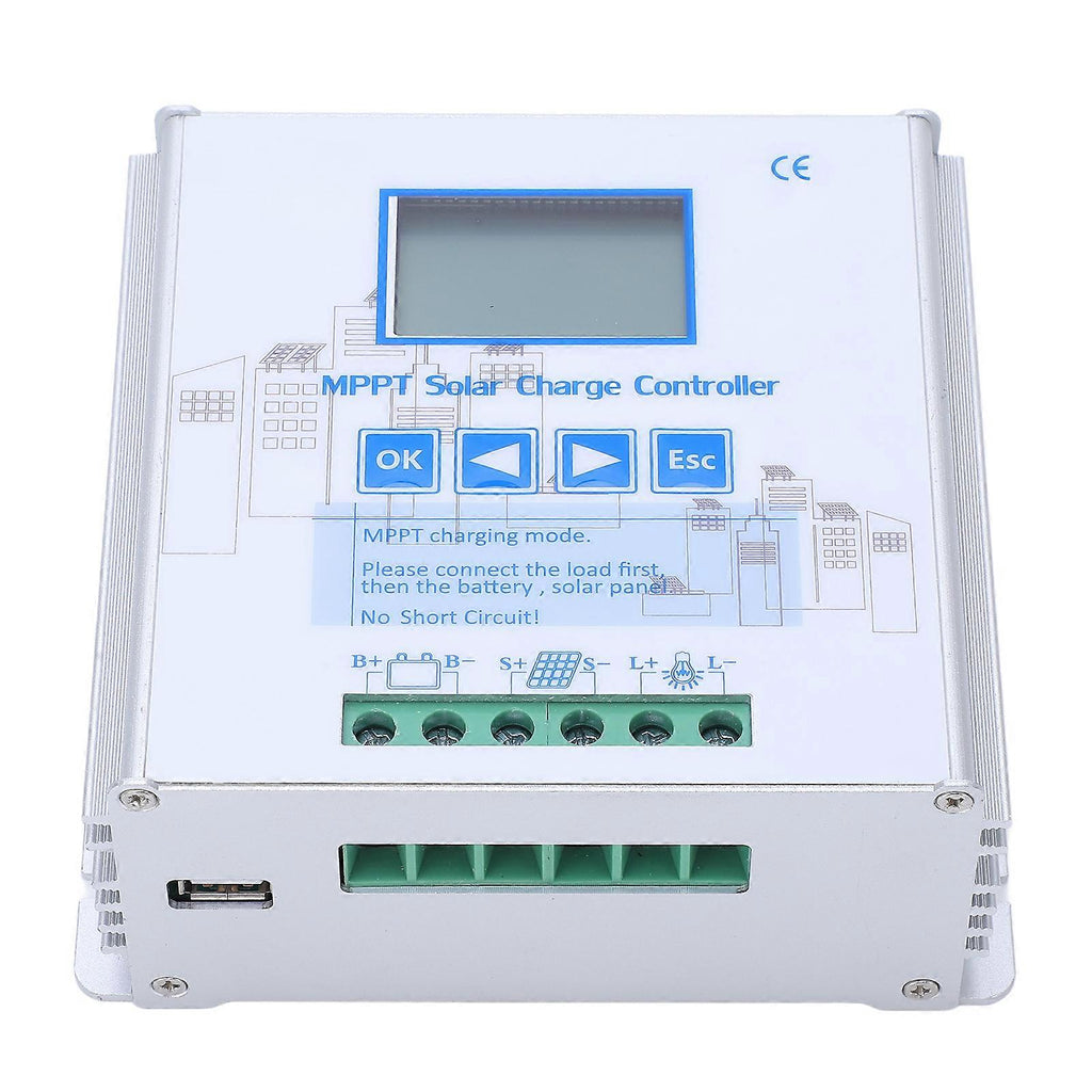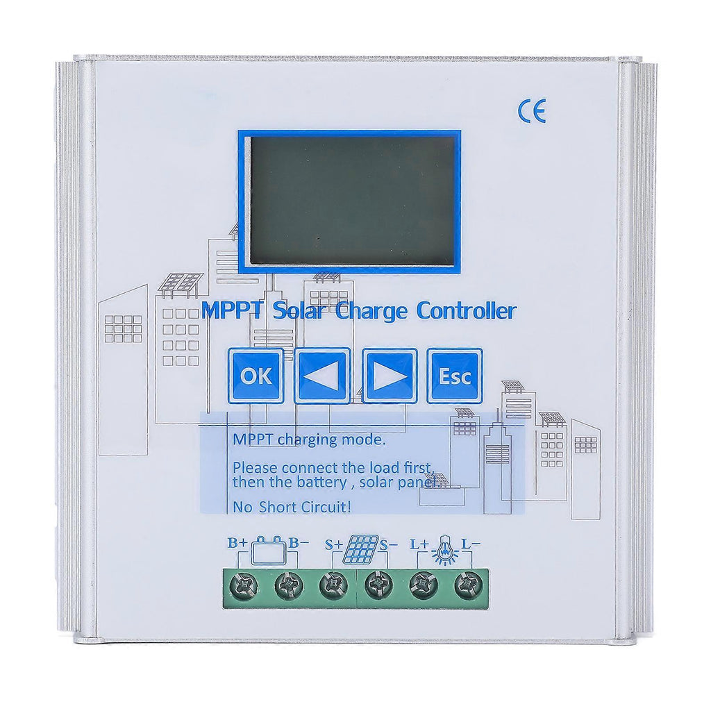 Features 1MPPT High Efficiency Charging: Adopt MPPT charging method the energy utilization rate is higher can exert the maximum power of the battery board provides a larger charging current. 2Regulated Charging: Featuring activation function for lithium battery and regulated charging function avoid the controller from crashing protect the battery cells. 3Two Ways of Taking Electricity: When the battery does not supply power to the controller which will turn to take electricity from the photovoltaic. 4Widely Compatible: This controller is adapt to a variety of batteries including acid gel battery ternary lithium battery lithium iron phosphate battery and other types of batteries. 5Multiple Protections: The controller features the protections against solar anti reverse charging battery reverse connection battery open circuit overvoltage and load overload power failure and lightning. Specification Item Type: MPPTSolarChargeControllerMaterial: Aluminum AlloyRated Current: 30APV Maximum Access Power:12V: 30A 390W24V: 30A 780WPower Taking: Battery or photovoltaic panel to take powerCharging Method: MPPT charging functionLoad: A variety of working modes are available: pure light control mode normally open mode light control plus time control mode (four periods morning light)Protection Type: Solar battery anti reverse charging protection battery open circuit protection battery reverse connection protection overload protection etc. Package List 1 xMPPTSolarChargeController1 x Manual