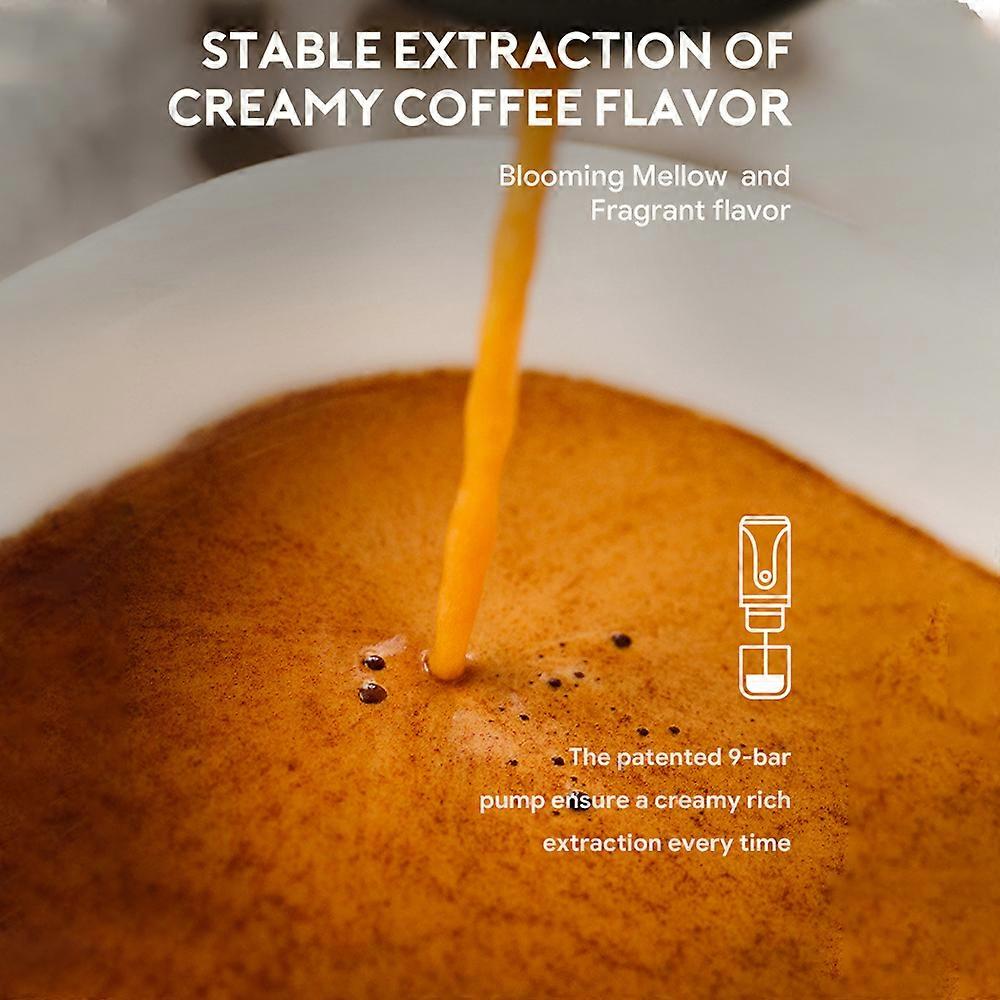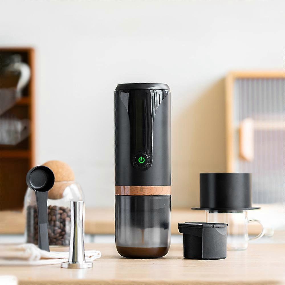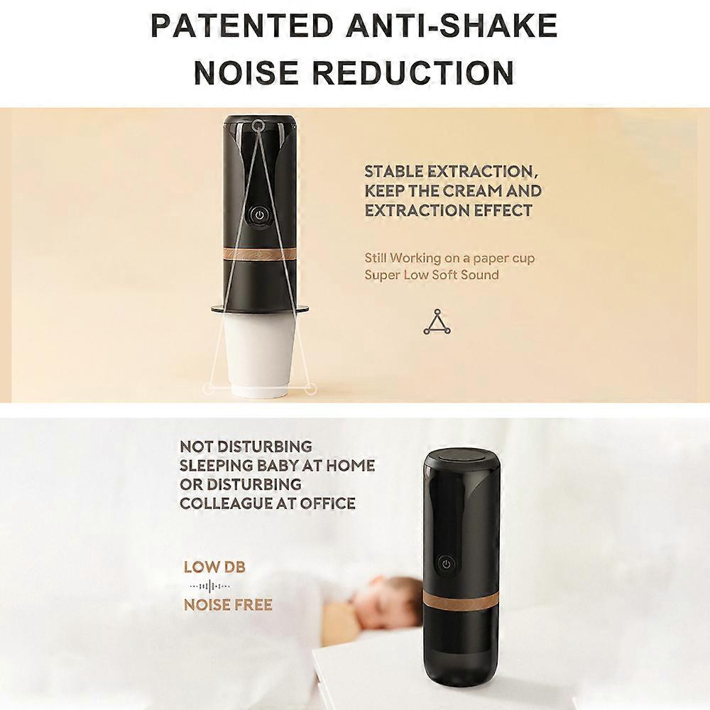 Features: 19 Bar Large Power: This 2-in-1 Espresso maker is designed to deliver a perfect cup of espresso with a consistent 9 bar pressure ensuring a rich and flavorful coffee experience. The espresso coffee maker is with Nespresso capsules \u0026 ground coffee. 2Dual-Use Design: The portable espresso maker is designed to hold both coffee powder and coffee capsules making it a versatile addition to your kitchen. It can be used with any type of coffee powder or coffee capsules giving you the freedom to experiment with different flavors and blends. 3Low Noise: The built-in motor of espresso coffee maker machine operates at a low noise level ensuring a peaceful and enjoyable coffee-making experience. You can enjoy your coffee without any disturbance or distraction. Specification: Features:9 Bar Large Power: This 2-in-1 Espresso maker is designed to deliver a perfect cup of espresso with a consistent 9 bar pressure ensuring a rich and flavorful coffee experience. The espresso coffee maker is with Nespresso capsules & ground coffee.Dual-Use Design: The portable espresso maker is designed to hold both coffee powder and coffee capsules making it a versatile addition to your kitchen. It can be used with any type of coffee powder or coffee capsules giving you the freedom to experiment with different flavors and blends.Low Noise: The built-in motor of espresso coffee maker machine operates at a low noise level ensuring a peaceful and enjoyable coffee-making experience. You can enjoy your coffee without any disturbance or distraction.Rechargeable Lithium Batteries: The portable espresso machine comes with two 1200mAh rechargeable lithium batteries which can be easily charged using the included USB Type-C cable. This ensures that you can enjoy your coffee anytime anywhere without the need for a power outlet.Easy to Clean: The travel coffee maker is designed to be easy to clean with a removable capsule adapter coffee powder and a coffee cup. This makes it easy to clean and maintain ensuring that your coffee always tastes fresh and delicious.Specification:Product material: 304 stainless steel + food-grade plasticProduct size: 228 x 75mm / 8.97 x 2.95inProduct weight: about 565g / 19.92ozProduct color: BlackRated voltage: 5VRated current: 1ARated operating voltage: 12V/1ARated power: 12WBattery capacity: 2*1200mAh lithium batteriesCharging time: 100minsTime of single use: 2minsFull charged of life time: 52 timesWater tank capacity: 120mlCoffee capacity: 100mlPressure: 9barNote:This coffee machine does not come with heating function!If you need to drink hot coffee you need to heat it up on your own after extraction.Packing List:1 x Travel Espresso Maker1 x Coffee Capsule Adapter1 x Bracket1 x Glass Cup1 x Spoon1 x Cleaning Brush1 x Coffee Tamper1 x Carrying Pouch1 x USB Type-C Charging Cable1 x User Manual Package List: 1 x Travel Espresso Maker1 x Coffee Capsule Adapter1 x Bracket1 x Glass Cup1 x Spoon1 x Cleaning Brush1 x Coffee Tamper1 x Carrying Pouch1 x USB Type-C Charging Cable1 x User Manual