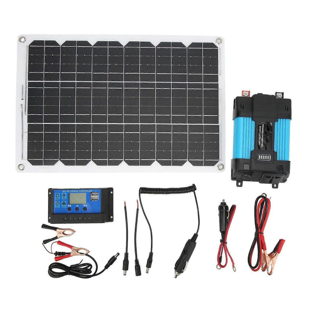 Features 1Solar Charge Controller: Equipped with 30A solar charge controller LCD display easy to understand the current working status of the solar charger. Floating charging stopping discharging reconnecting and charging after discharging are adjustable. Can prevent battery overcharge over voltage discharge and short circuit reverse polarity protection comprehensive battery protection. 2Solar Panel Controller: Dual USB automatic battery voltage identification voltage display power display LCD display charge and discharge parameters can be self adjusted light control and time delay can be set full protection function. 3Solar Panel: High efficiency monocrystalline solar panel with aluminum substrate high efficiency chip and PET with good anti corrosion wear resistance durable. 4Power Inverter: Portable solar power kit is equipped with inverter which can make the solar energy better converted into electric energy for you. 518V 18W Solar Panel: Solar panel kit with 18W power can effectively convert sunlight into electricity high efficiency and energy saving. Specification Item Type:PortableSolarPowerKitProduct Material: Aluminium Substrate High Efficiency chip PET ABSColor: BlueWeight: Approx. 1957g / 4.3lb Package List 1 x Solar Controller1 x Inverter1 x Solar Panel2 x Battery Clip1 x Cigarette Lighter2 x DC Cable1 x DC Clip1 x Charging Cable3 x Manual