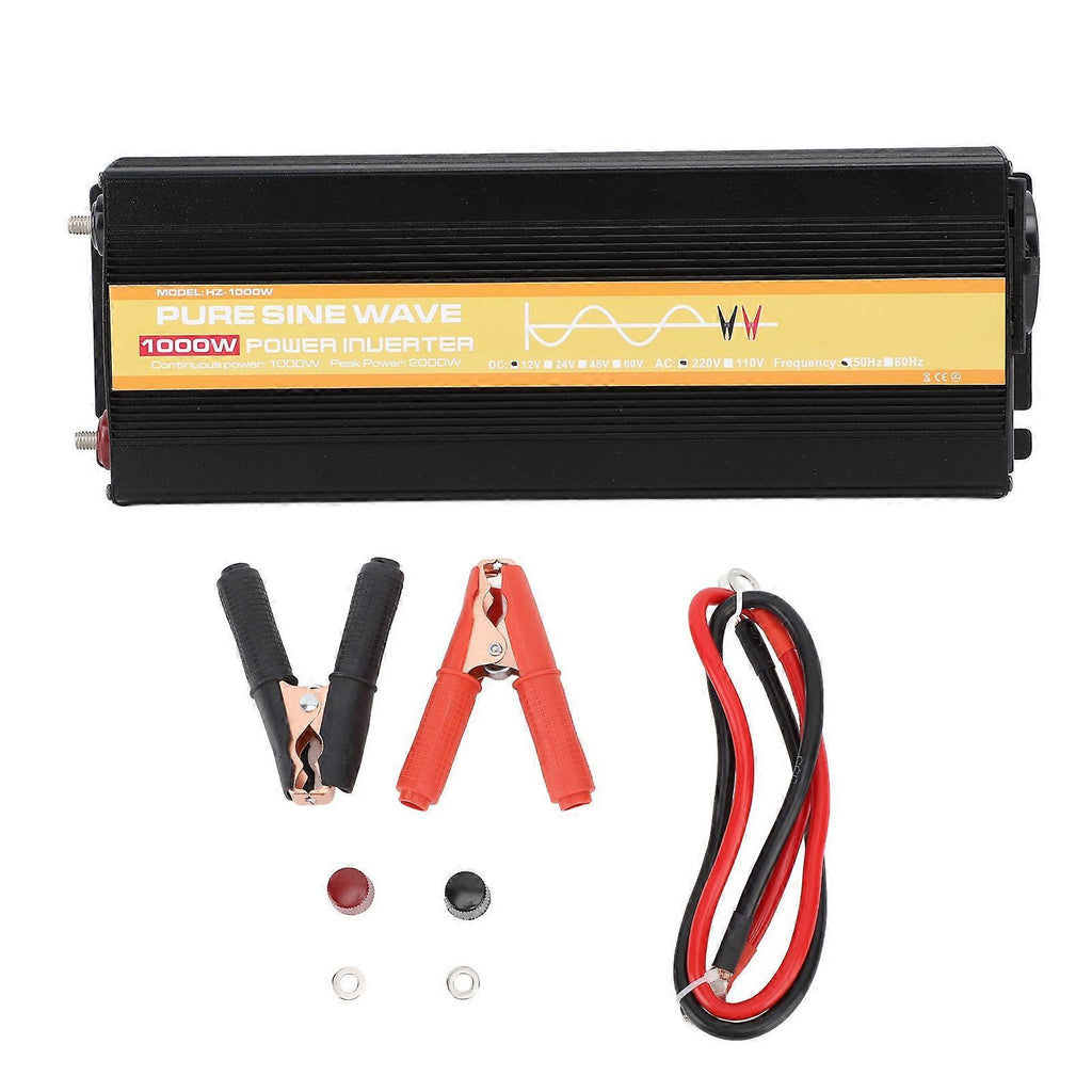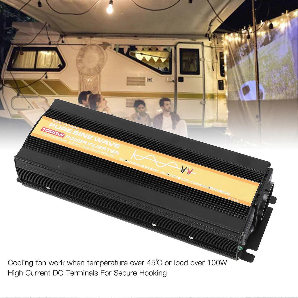 1HIGH PERFORMANCE OUTPUT: This pure sine wave inverter has an actual output power of 1000W and a peak power of 2000W, which is able to meet a wide range of usage requirements. It has 12V DC input and AC output, which is suitable for most devices.