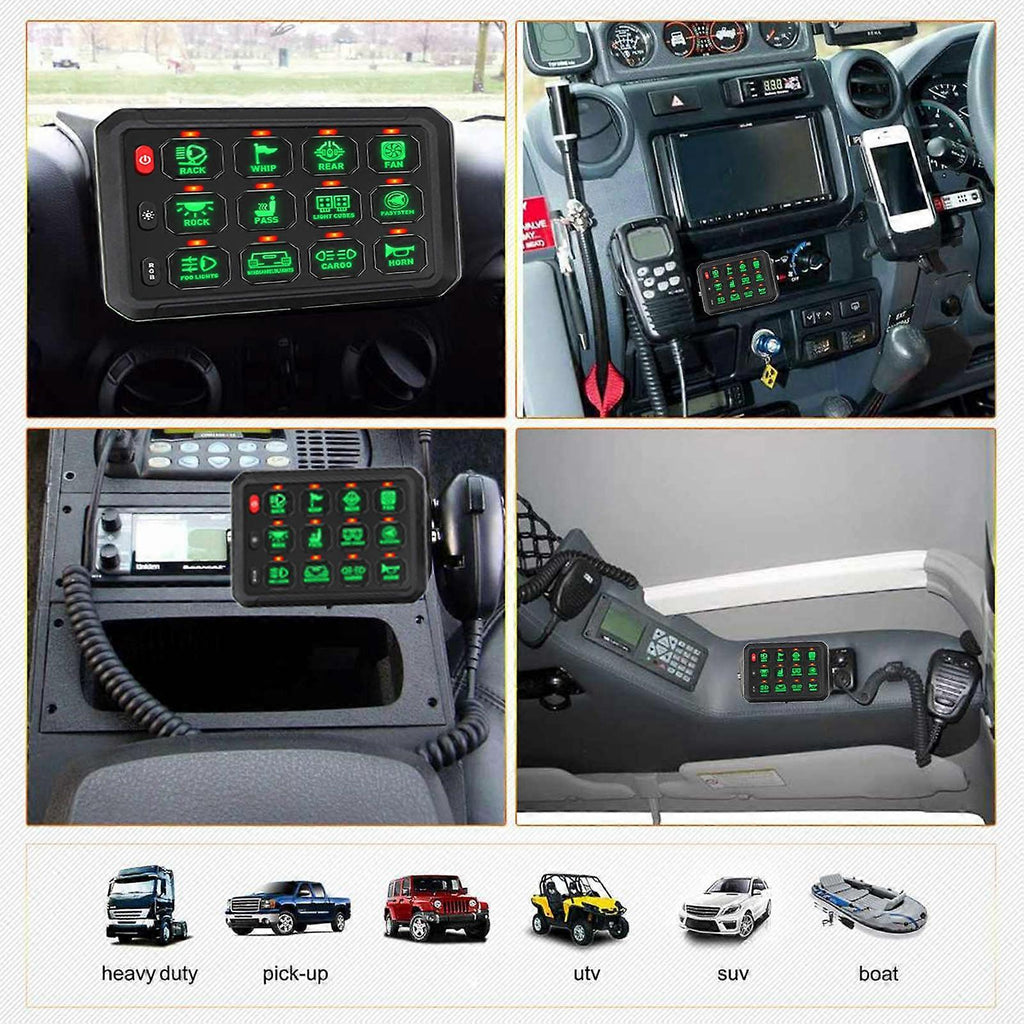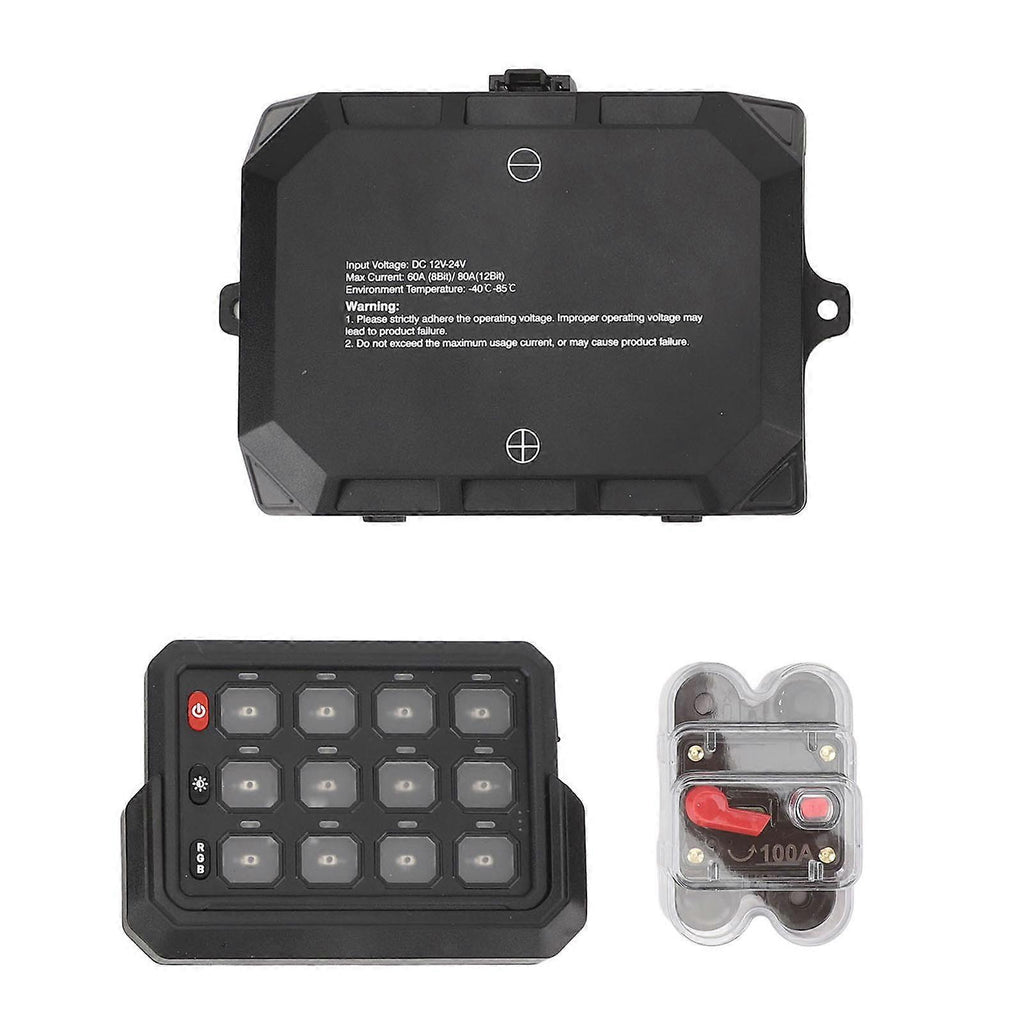 RGB 12 Gang Switch Panel IP65 Waterproof LED Circuit Control Relay System with Wireless Remote Control for Truck Marine SUV DC 12V 24V