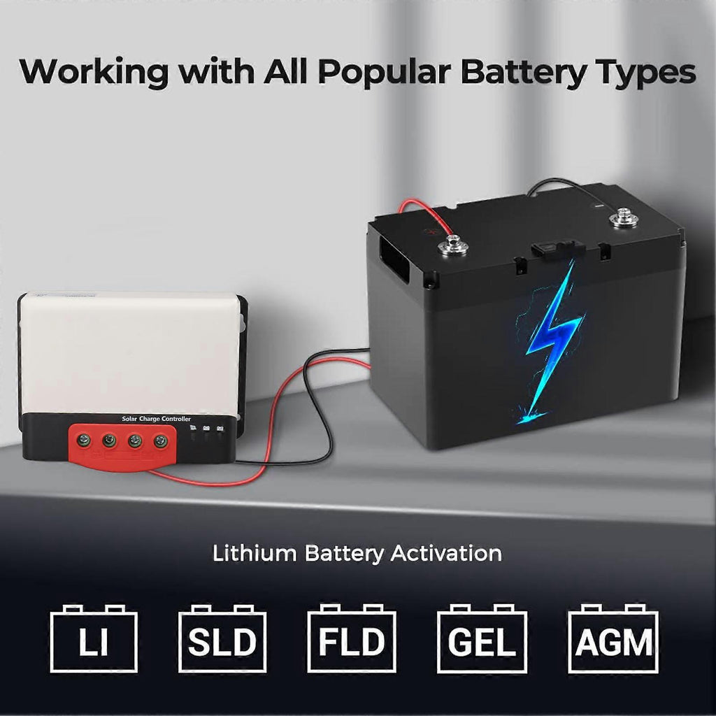 Features 1MPPT Design: Made with cast aluminum for excellent heat dissipation and maximum power point tracking (MPPT) technology, achieving a tracking efficiency of up to 99% and a peak conversion efficiency of up to 98%. The excellent charging solution even in cloudy environments. 212V 24V Auto Detection: Automatically detects the system voltage at 12V or 24V. Multiple LED indicators display solar charging and battery operation information. 3Comprehensive Safety Protection: Self diagnostic function assesses and protects your system, preventing reverse polarity, battery overcharging, battery over discharging, overload, short circuit, and reverse current. 44 Level Smart Charging: 4 level charging for acid batteries (bulk, absorption, float, and equalization) and 2 level charging for lithium batteries (bulk and absorption), as well as lithium battery activation. 5Multiple Load Control: Directly connect DC devices to optional load terminals and monitor power consumption directly from the controller or set timer control. Specification Item Type: Solar charge controllerMaterial: Aluminium alloyWeight: Approx. 734g / 25.9ozProduct Size: 150x105.6x61.5mm / 5.9x4.2x2.4inPower: 260W(12V), 520W(24V) Package List 1 x Solar Charge Controller1 x Manual