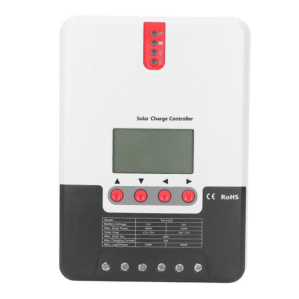 Item Type: Solar Charge ControllerMaterial: Aluminum AlloyCharging Current: 20ADischarge Current: 20AMaximum PV Power: 260W 12V 520W 24V