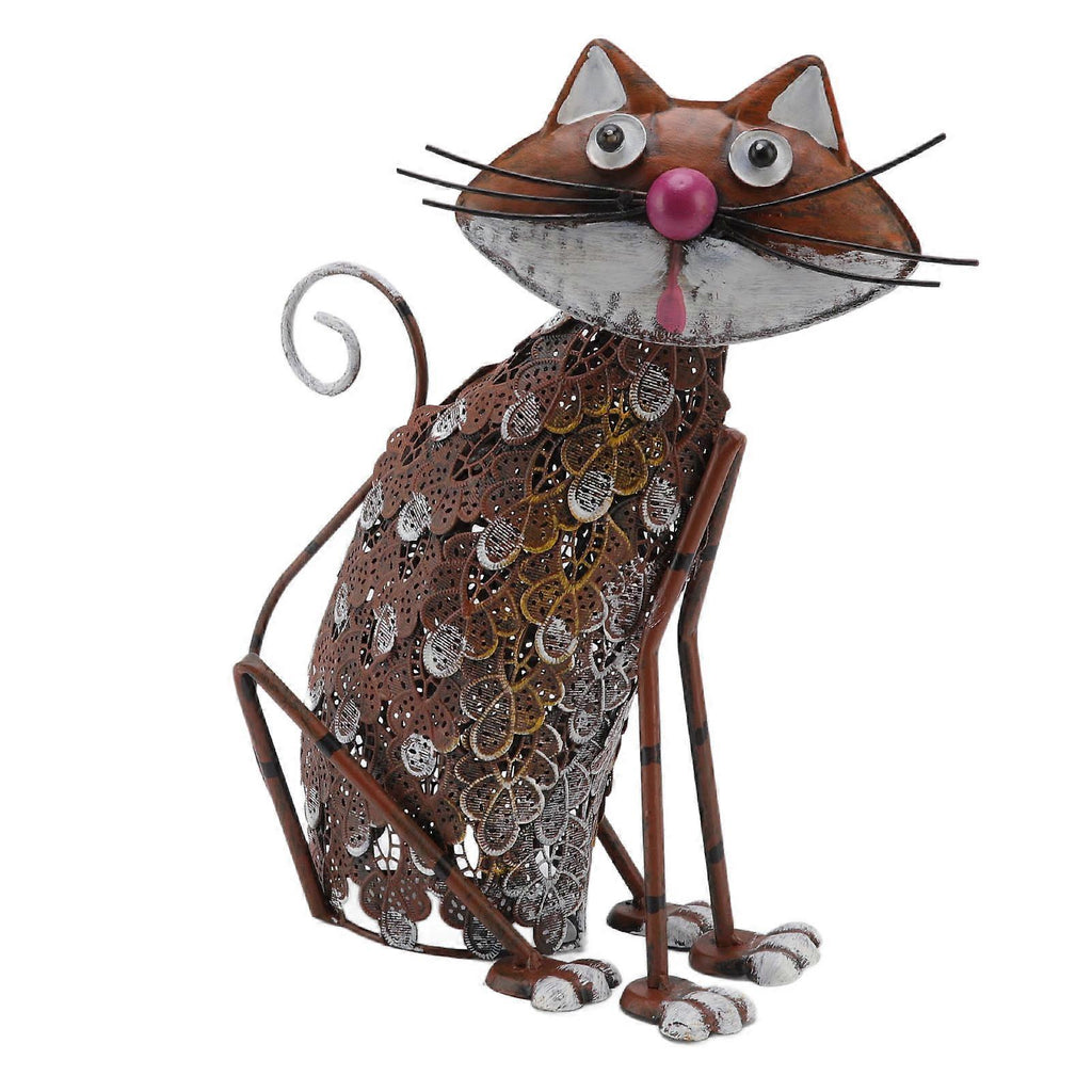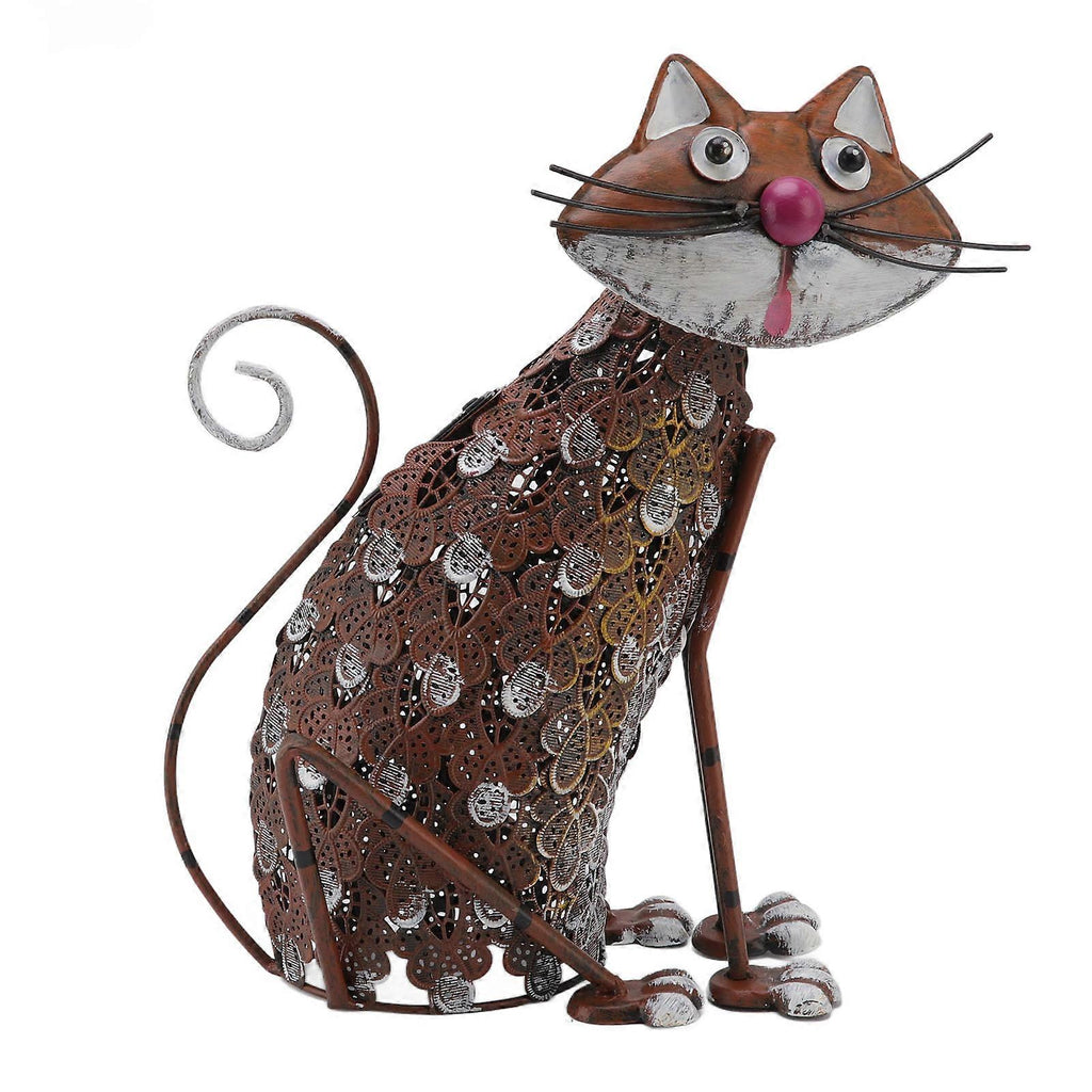 Solar Lamp Cat Figurine Patio Ornament Light Iron Decoration for Garden Backyard
