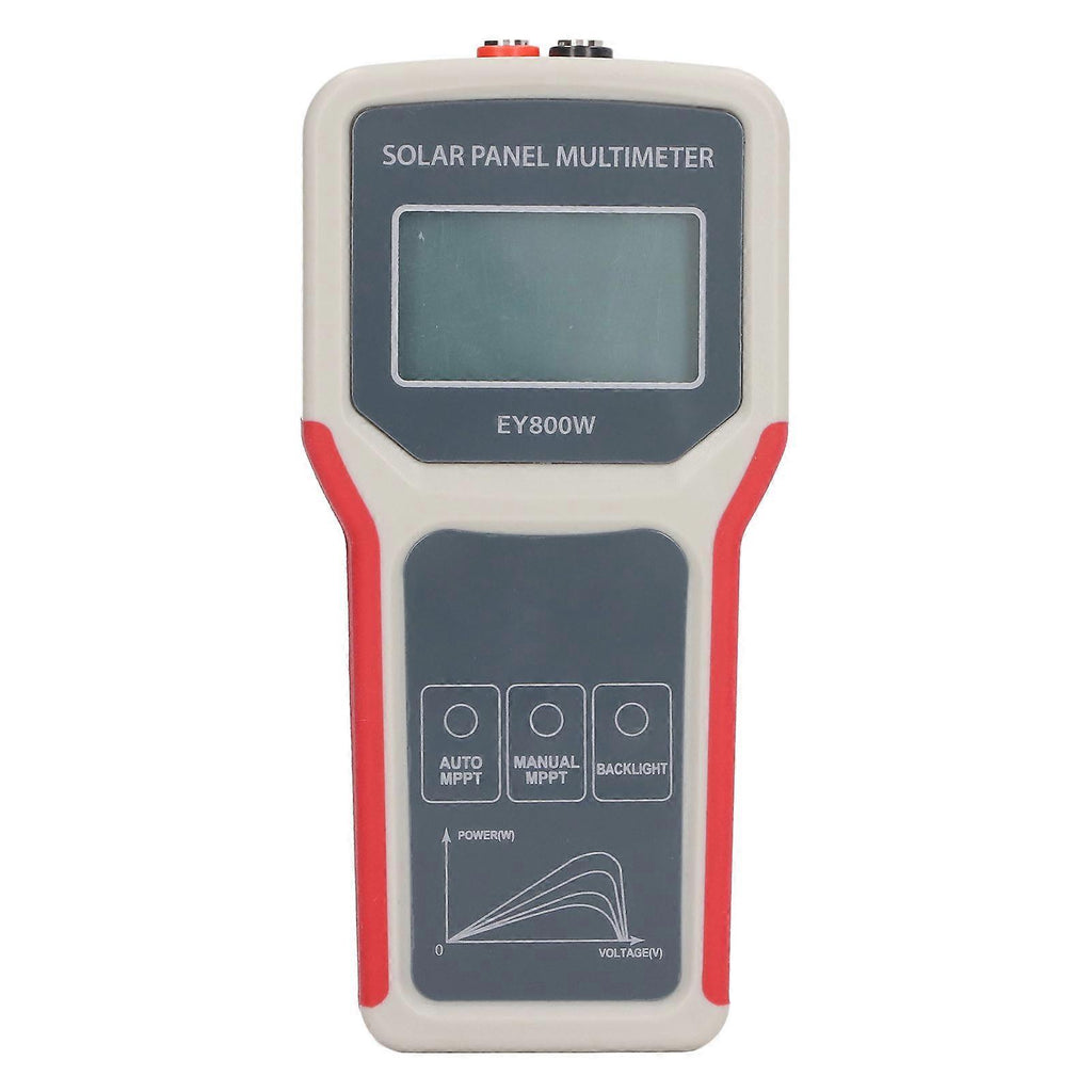 Features 1Multiple Protection: Solar panel MPPT tester has over temperature over voltage over current protection PV panel reverse connection protection over rated power protection. 2Switching Mode: PV panel multimeter can switch manual or auto test mode without extra power supply. Measure PV panel open circuit voltage measure PV panel class high power point. 3HD Backlight: The solar panel MPPT tester adopts HD LCD display with its own backlight clear under the sun no batteries solar panel power supply no need for another battery. 4Automatic Measurement: When pressing the automatic MPPT test button the multimeter will test itself and refreshing the digital display according to the current power value. 5Manual Measurement: When pressing the automatic MPPT test button the instrument automatically adjusts the test interval time according to the current power value the higher the power the longer the interval time and refreshes the digital display. Specification Item Type: Photovoltaic Panel MultimeterModel: EY800WMaterial: ABSUse: Widely used by the crowd photovoltaic panel manufacturers photovoltaic panel operators photovoltaic panel installers photovoltaic panel users photovoltaic enthusiasts etc.Basic ParametersPower: 5-800WCurrent: 0-35A Package List 1 x SolarPanelMPPTTester4 x Connection Cable1 x Instruction Manual1 x Storage Bag