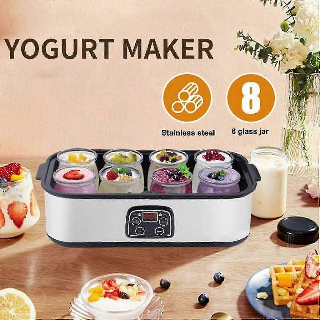 Features 1. The yogurt maker has a large capacity of 1400ML, enough for a family to enjoy. 2. The yogurt machine has a constant temperature fermentation function, making yogurt more rich and delicious. 3. It can not only make yogurt, but also make milkshakes, jams, ice cream, and other delicious dishes. 4. The yogurt maker is made of stainless steel material, which is safe, hygienic, and durable. 5. Breakfast set, versatile, adding more choices to your healthy breakfast. Specification Name: Yogurt Machine Power: 25W Weight: 2.4 kilograms Voltage: 110-240V Color: Silver Packaging size: 36.8 x 19 x 14.5cm Package Include: Yogurt machine x1