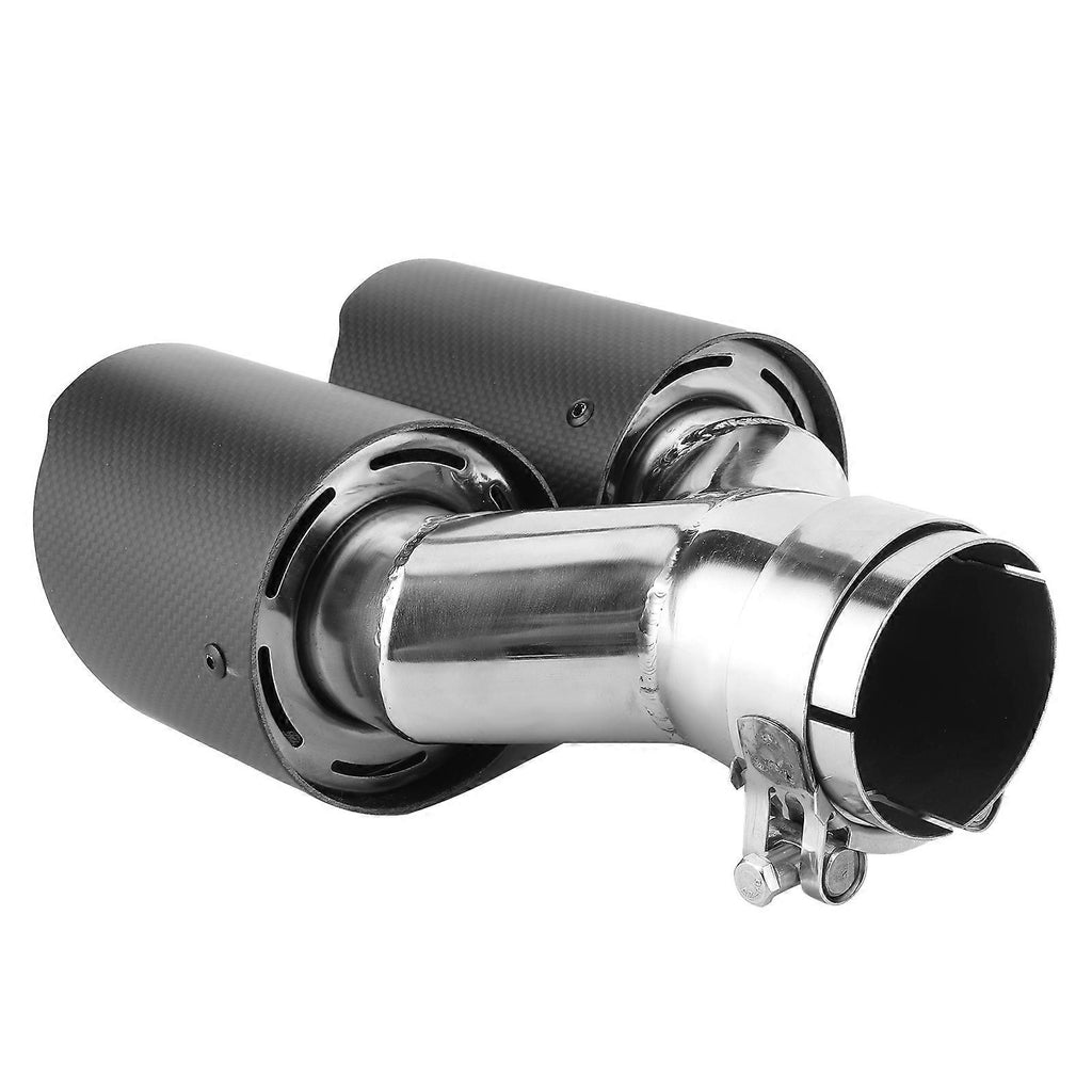 Universal Exhaust Tip Matte Carbon Fiber Tail Throat Y shaped 3.5in Dual Outlet 2.5in Inlet