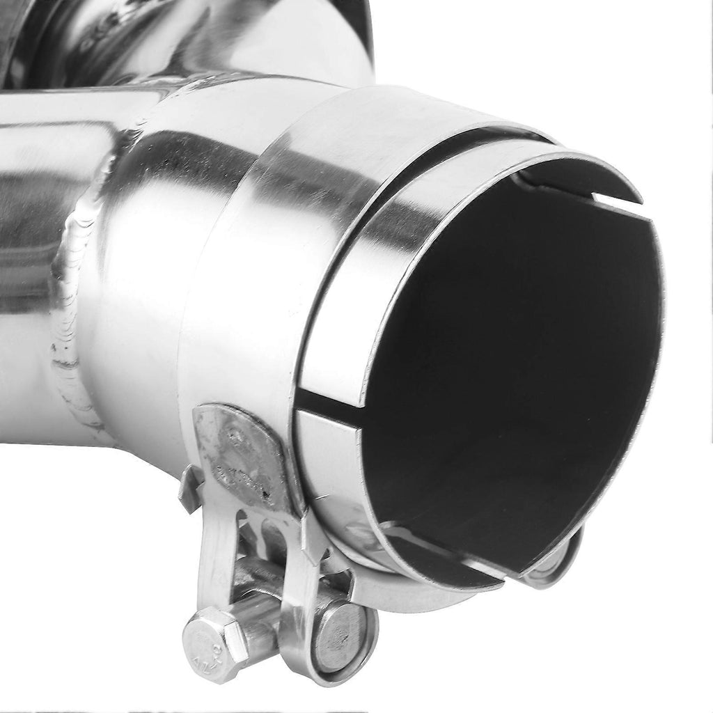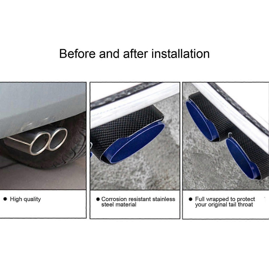 Features: 1.Making exhaust smoother, enhance the power, which can improve driving experience. 2.Durable stainless steel and carbon fiber, anti?corrosion and heat resistant. 3.With an adjustable clamp, it can be used for 2.3?2.4in car exhaust pipe. 4.Y?shaped dual outlet exhaust, with 2.5in inlet size and 3.5in outlet size. 5.Universal parts for car, excellent replacement for the old or broken exhaust tip. Specification: Condition: Item Type: Tail Throat Material: Stainless Steel + Carbon Fiber Applicable Models: Universal for car Installation Size: Air Inlet: Approx. 63mm/2.5in Air Outlet: Approx. 89mm/3.5in The exhaust tips with clamp, suitable for 58-60mm/2.3-2.4in car exhaust pipe. Note: Please note that this tail throat generally requires cutting of the exhaust pipe.