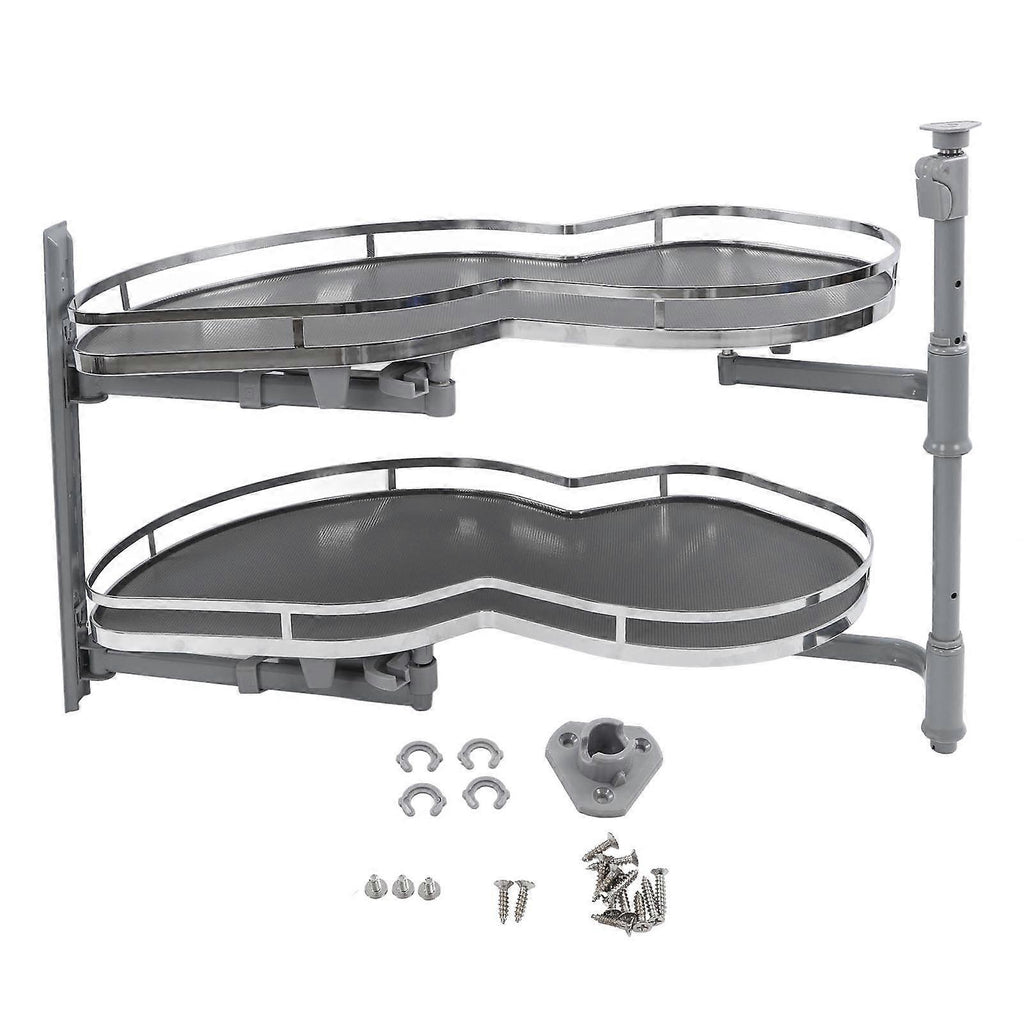 Blind Corner Cabinet Tray 2 Tier Height Adjustable Strong Load Bearing Cabinet Swing Pull Out Organizer Left Open