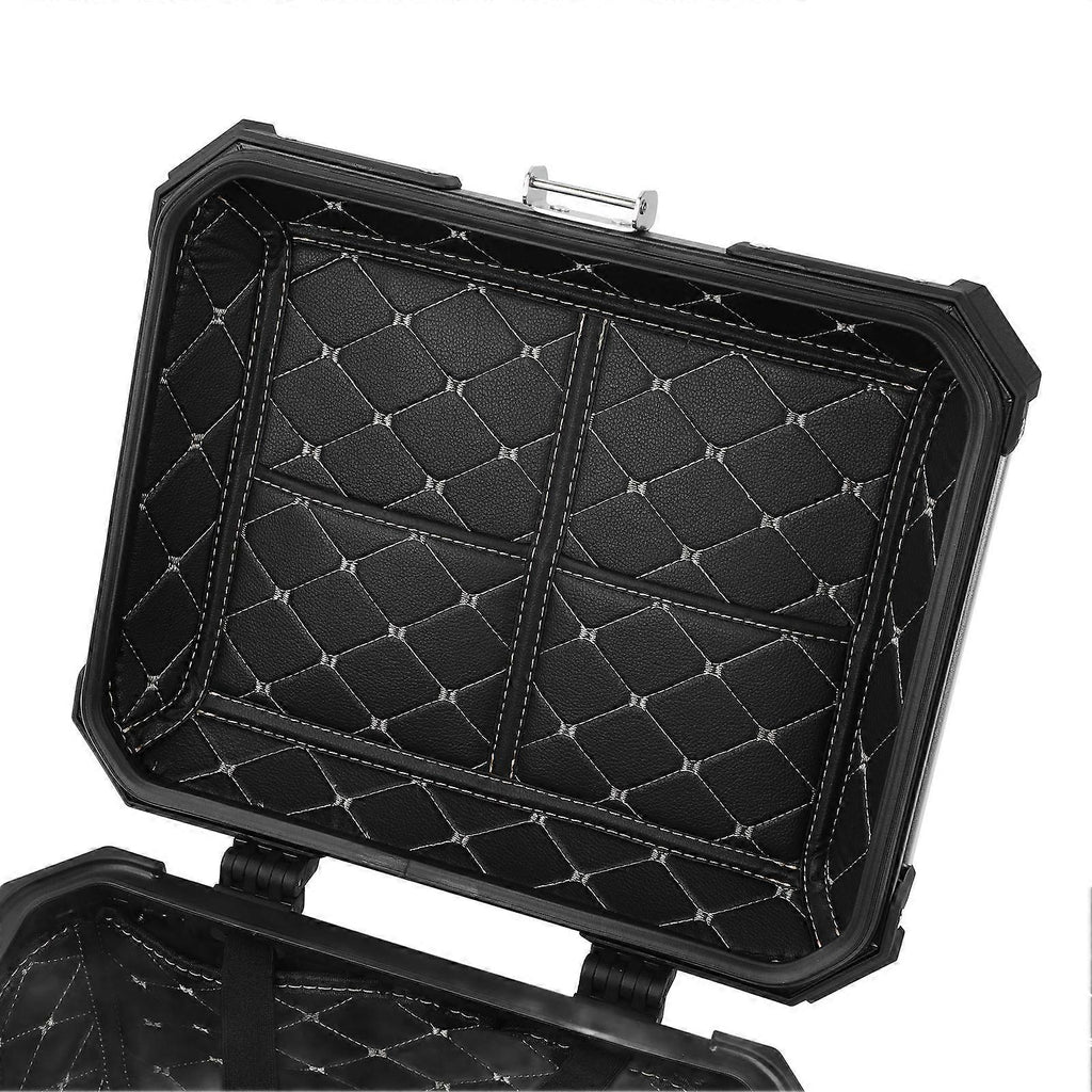 Feature: 1. SPACIOUS STORAGE: The external dimensions of the 45L motorcycle top box are approximately 42 x 33 x 33CM. It can hold a full helmet, rain jacket, and small maintenance tools. The flat body ensures maximum carrying capacity. 2. ALUMINUM ALLOY CONSTRUCTION: Made of 1.5mm thick aircraft grade aluminum alloy, this motorcycle tail box offers excellent strength, rigidity, and stability. It is impact resistant, waterproof, and dustproof, ensuring passenger safety. 3. SEALED AND WATERPROOF: The top box is constructed with 1.5mm 5052 aluminum alloy plate and features perfect automatic welding seams. A special sealing system makes it completely dustproof and waterproof. 4. ENHANCED SECURITY: Reinforced corners and heavy duty stainless steel latches on the box. The top box cover integrates 2 handles with 4 sturdy securing points for added security. The internal tie down device is ideal for securing cargo. 5. UPGRADED COMFORT: Includes a cushion made of soft leather pattern that absorbs vibrations during rides. The top case rack can easily connect to the carrier with the quick release system. Removable and washable interior lining for added convenience. Specification: Item Type: Motorcycle Tail Box Appearance Treatment: Electrostatic Spraying Material: 5052 Aluminum Alloy Thickness: Approx. 1.5mm/ 0.05in Top Case Capacity: 45 liters Size: Approx. 42x33x33cm / 16.54x12.99x12.99in Configuration: 1. Leather Lining (Detachable) 2. Luggage Buckle (2 Keys): Stainless Steel Lock System (2 Keys) 3. Handles (Left and Right): Grab handles (Left and Right) 4. Quick Release Bottom Plate: Top Case Carrier (Quick Release) 5. Backrest: Two soft cushioned backrests Fitment: Replacement for Suzuki . Package List: 1 x Tail Box (with Quick Release Base) 2 x Soft Back Cushion2 x Reflective Stickers 2 x Installation Wrenches1 x Mounting Bracket Screws Set (16PCS) 2 x Keys 1 x User Manual