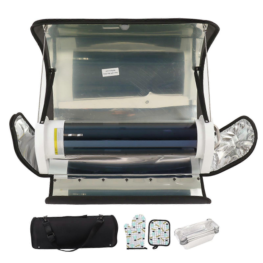 Feature: 1. Solar Energy Design: No energy consumption, smokeless, eco friendly, healthy, in line with the non carbonization energy target. 2. Great Performance: The solar oven can work in all seasons as long as there is sun, and it can also work on cloudy or snowy days, effectively capturing UV rays and retaining heat. 3. More Delicious: Solar cooking is even tastier because with little air flow in the solar oven, the food cooks evenly and stays moist and soft. 4. Easy to Use: The solar stove can be installed and stored in seconds, with zipper design on both sides. Children can participate without supervision, save a lot of time and energy, enjoy the food and relax at the same time. 5. Wide Application: Whether you are camping in a tent, RV, hiking, fishing, kayaking or military exercise, this solar oven is a reliable source of cooking. Specification: Item Type: Solar Oven Material: Stainless steel, vacuum glass tube, ABS plastic, polyester, reflector Weight: Approx. 6450g/227.5oz Undeveloped Size: Approx. 61x21x21.5cm/24.0x8.3x8.5in Capacity: 4.5L Inside Diameter: 10.2cm/4.0in Power Output: 200W Maximum Temperature: 550??F (288??C) Operating Temperature: 200??F (93??C) to 450??F (232??C) Application Scenario: outdoor park, home balcony, home yard, everywhere that can receive the sun Using Scope: roast meat, bake bread, make porridge, burn corn, everything you can think of for a barbecue Principle: Vacuum solar collector heating, the temperature can reach 120 to 330 degrees Celsius.. Package List: 1 x Solar Oven10 x Aluminum Foil Box 1 x Glove 1 x Cushion 1 x Specification 1 x Shoulder Strap