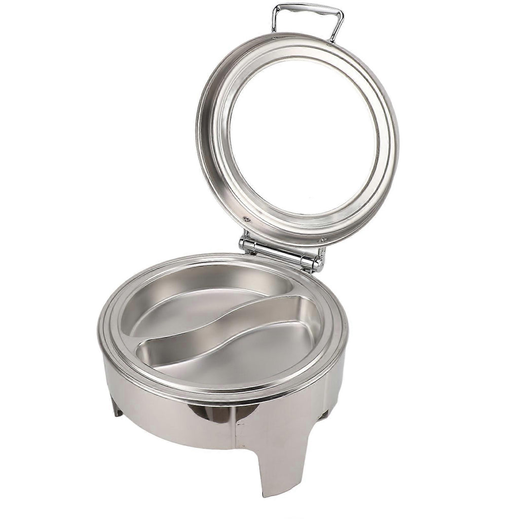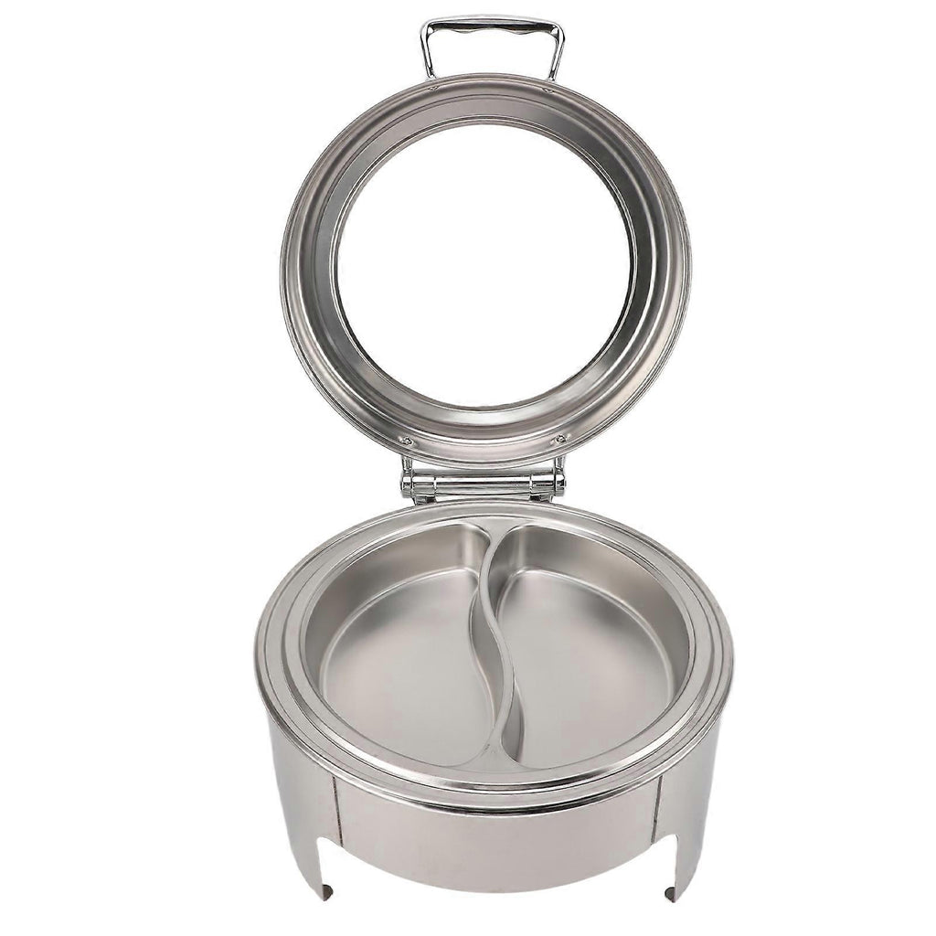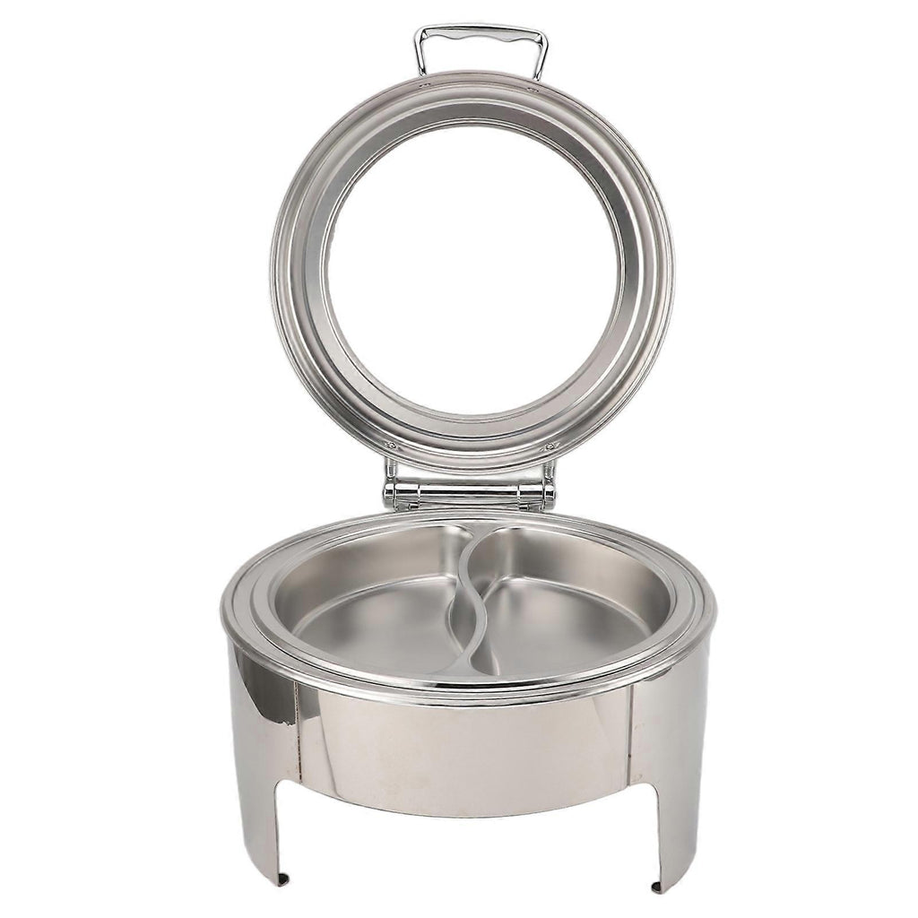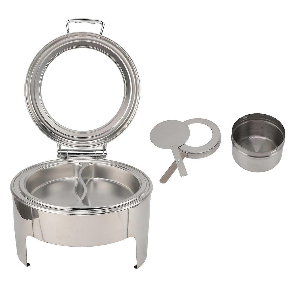 6L Round Stainless Steel Chafing Dish with Visible Glass Lid Thicken Buffet Server for Events Wedding Camping Dinner 2 Compartment Pan