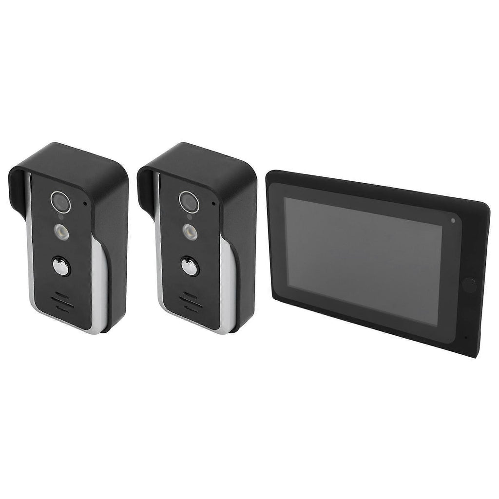 Enhance your home security with our advanced WiFi Video Intercom Doorbell System. Combining cutting-edge technology with user-friendly features, this system provides seamless communication and monitoring capabilities, ensuring a secure and convenient experience for any household or business. 2 to 1 Video Intercom System: Designed for homes or businesses with multiple entry points, this system includes two doorbell cameras and one 7-inch video monitor. It??s perfect for scenarios requiring coverage of two doors, providing comprehensive security with ease. High Definition Display: Enjoy clear and detailed visuals on the 7-inch color TFT LCD monitor. The display is radiation-free and energy-efficient, offering high resolution and definition for sharp and vivid images. Equipped with white LED night vision lights, it ensures visibility even in low-light conditions. High Quality Material: Constructed from premium ABS and aluminum alloy materials, this video door phone is built to last. It features rainproof and oxidation protection, ensuring high strength and durability to withstand various weather conditions, making it a reliable choice for any environment. Multifunctional Features: This versatile video intercom system can unlock two locks simultaneously, providing enhanced security and convenience. It offers hands-free intercom, a silent indoor intercom function, and real-time monitoring. With adjustable volume, brightness, and contrast, you can customize the settings to suit your preferences. Remote APP Unlock: Stay connected and in control with the ability to link the indoor monitor to up to eight mobile app users, compatible with both iOS and Android devices. This feature allows you to record, view, and unlock doors remotely via your smartphone, providing ultimate flexibility and peace of mind. Invest in our WiFi Video Intercom Doorbell System for a smarter and safer home. Its sophisticated design and robust features make it an essential addition to your security setup, ensuring you stay connected and protected at all times.