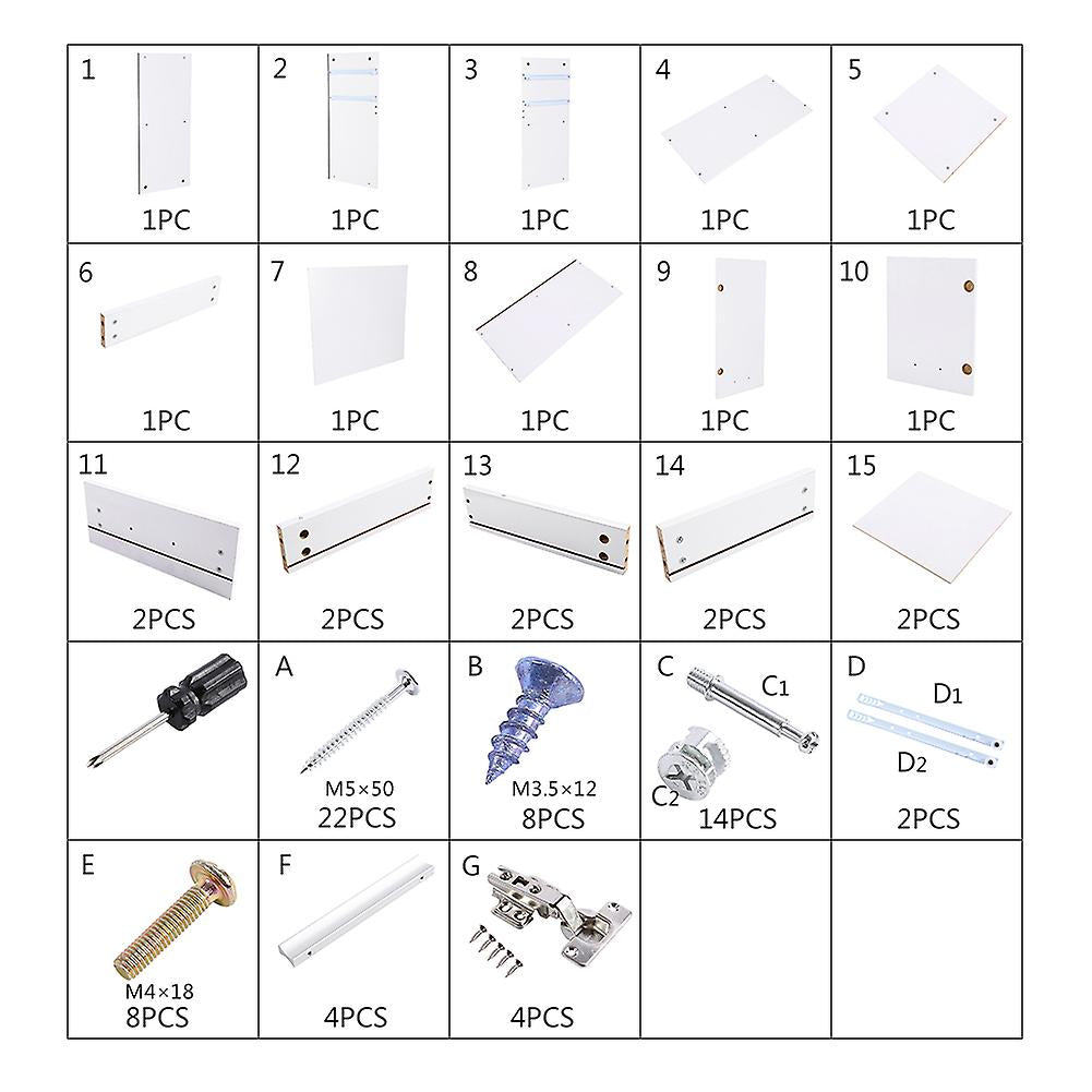 73.5x66x33cm White Wooden Floor Standing Storage Cabinet Cupboard with 2 Drawers and 2 Doors