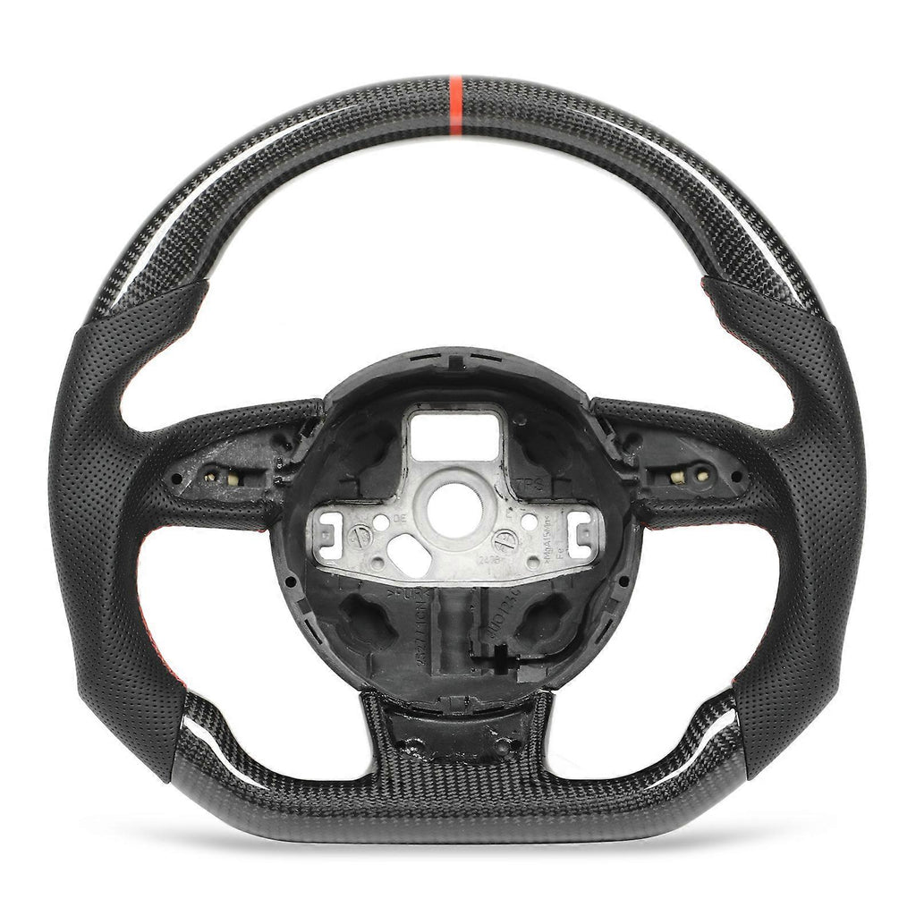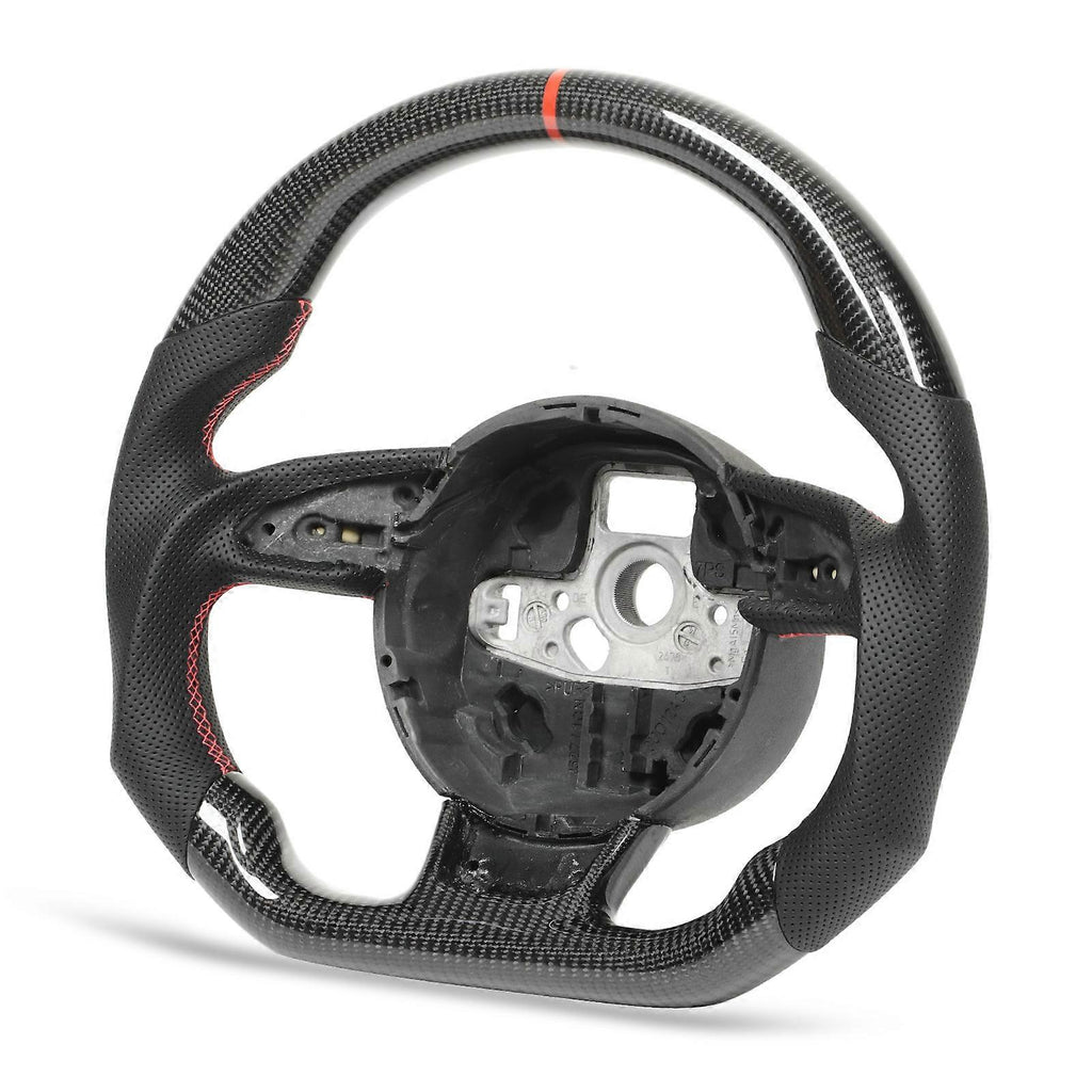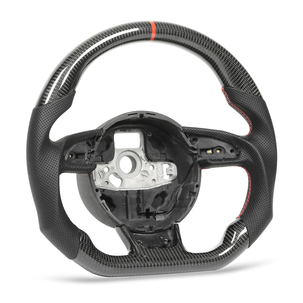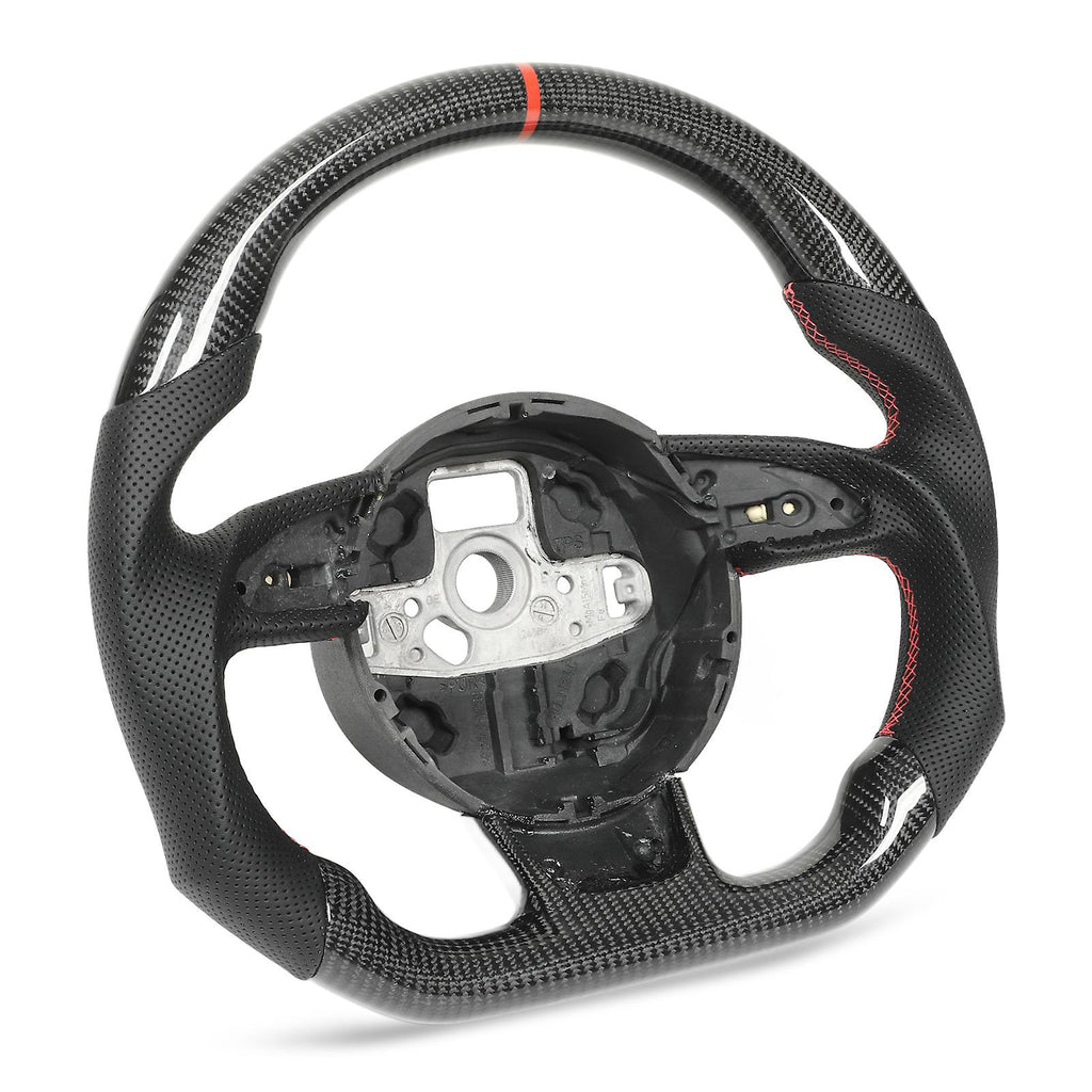 Elevate your vehicle's driving dynamics and style with our premium Carbon Fiber Racing Steering Wheel. Designed for those who demand sophisticated craftsmanship and enhanced performance in their automobiles, this steering wheel is the perfect blend of elegance and functionality. - **Fitment**: This steering wheel is compatible with a range of high-performance vehicles, including the S3 RS3 8V Pre-Facelift (2014-2016), S4 RS4 B8.5 Facelift (2013-2016), S5 RS5 B8.5 Facelift (2013-2016), and S7 4G8 Facelift (2015-2017). Please verify your vehicle??s model and year to ensure a perfect fit. - **Finely Crafted**: Experience superior craftsmanship with a steering wheel that features hand-stitched detailing for a luxurious feel. The flat bottom D racing style includes perforated leather grips, contrasting red stitching, a red 12 o'clock ring, and ergonomic finger ridges, all designed to enhance your driving experience. - **Real Carbon Fiber**: Constructed from high-quality 3K glossy carbon fiber, this steering wheel boasts a 1mm thick epoxy coating for excellent anti-oxidation protection. The symmetrical and uniform carbon fiber structure ensures both durability and a sleek, modern appearance. - **Excellent Grip**: The innovative flat bottom racing design not only offers more leg space but also ensures a secure grip regardless of the driving conditions. Whether you??re navigating city streets or high-speed tracks, this steering wheel maintains its grip, even under extreme conditions. - **Installation**: For optimal safety and performance, professional installation is strongly recommended. This process involves replacing the trim panel and transferring the harness from your existing steering wheel to ensure proper fit and function. Transform your driving experience with our Carbon Fiber Racing Steering Wheel, a must-have upgrade for enthusiasts looking to combine luxury with high-performance capabilities. Its advanced design and superior materials offer the ultimate in driving precision and comfort.