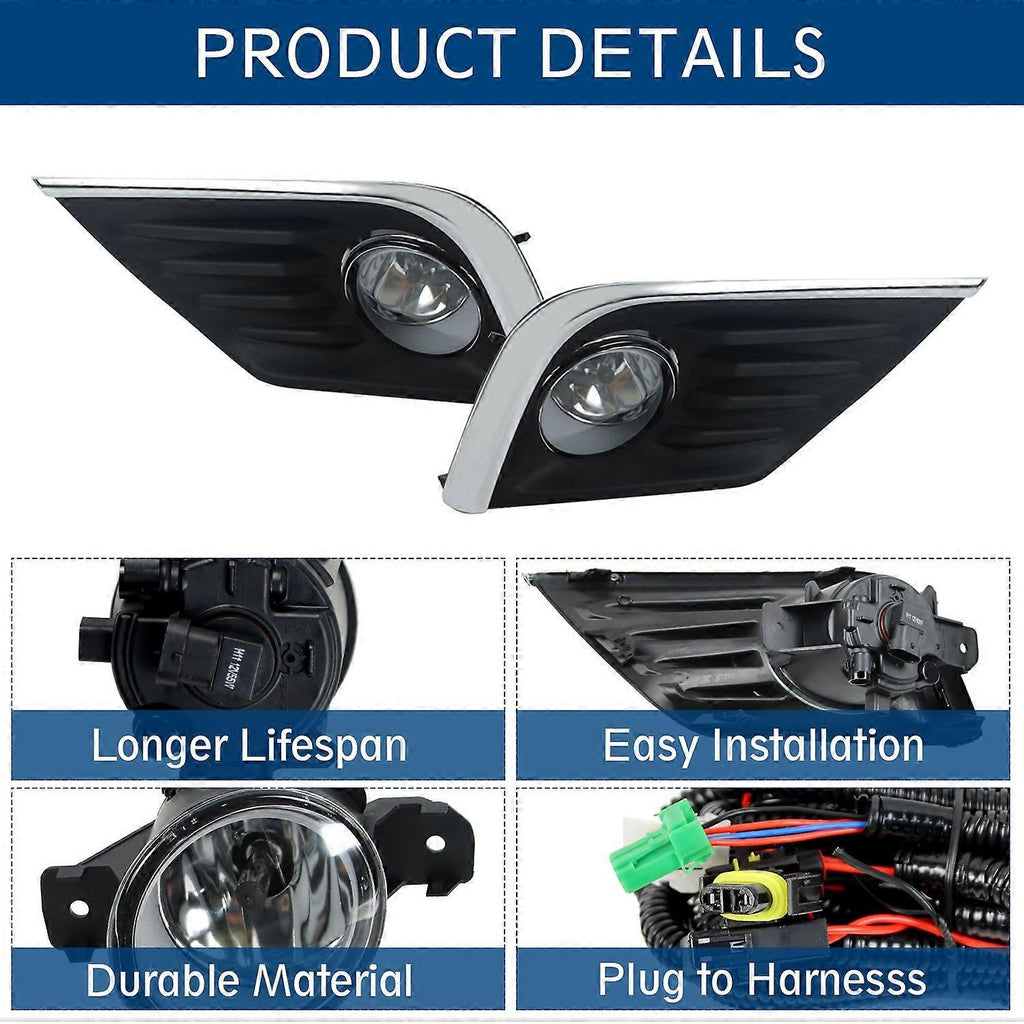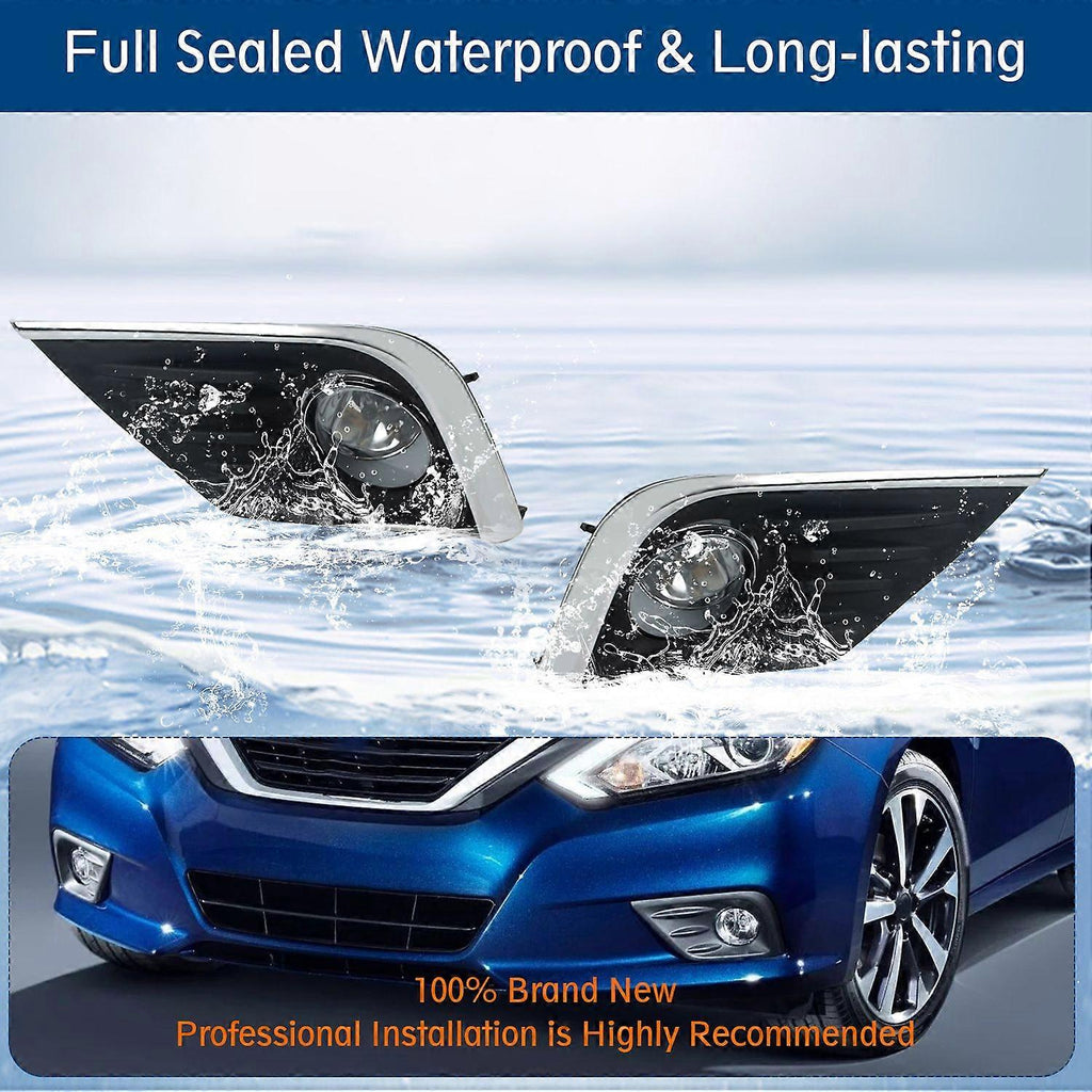 Feature: Specification: SpecificationPackage Include: 1 Pcs Wire,1 Pcs Switch,1 Pair Fog Lamp,1 Pair BulbsPackage Weight(lbs): 18.52Package Dimensions(LengthxWidthxHeight:inch): 23.62*19.69*13.39Lens Cover: ClearHousing Color: BlackMaterial: PCSwitch: YESWiring Harness: YESBulbs: W/ BulbsWattage: 35WVoltage: 12VBallast Included: YESItem Size(LengthxWidthxHeight:inch): 23.62*19.69*13.39Item Weight(lbs): 14.52Lighting Technology: HalogenFitment2016-2018 Nissan AltimaFeatures & Benefits1.Easy Installation - No Drilling or Any Other Modification Needed, Convenient to Replace Old and Worn Fog Lights.2.Solid & Durable Fog Lights - These lights are quality and have a nice heft. Rugged housing, anti-crash lens, sealed wiring, waterproof design. What a great way to spruce up the light output and look of your truck 3.Function - Enhance visibility during night time, heavy rain, snow, or dense fog, also bring a different appearance to vehicle that's great for show use or to replace old and worn fog lights.4.DOT Compliance - DOT Approved on the top lens, Legal on the road. Perfect fog light beam pattern & sharp cutoff line do not blind oncoming vehicles. No shadows, No dark spots. Maximize Ensuring your safety.5.Fog lights provide excellent secondary lighting to complement the headlights. Fog lights are especially useful in adverse conditions such as rain, snow and fog, when visibility is greatly reduced. Fog lights are mounted in the factory predetermined area on the bumper where they look best and do not sacrifice aerodynamic performance.6.Guarantee - 1 Year WARRANTY for these fog lights. Please contact us with any problems before or after purchase. Friendly Reply within 24hrs. Package List: