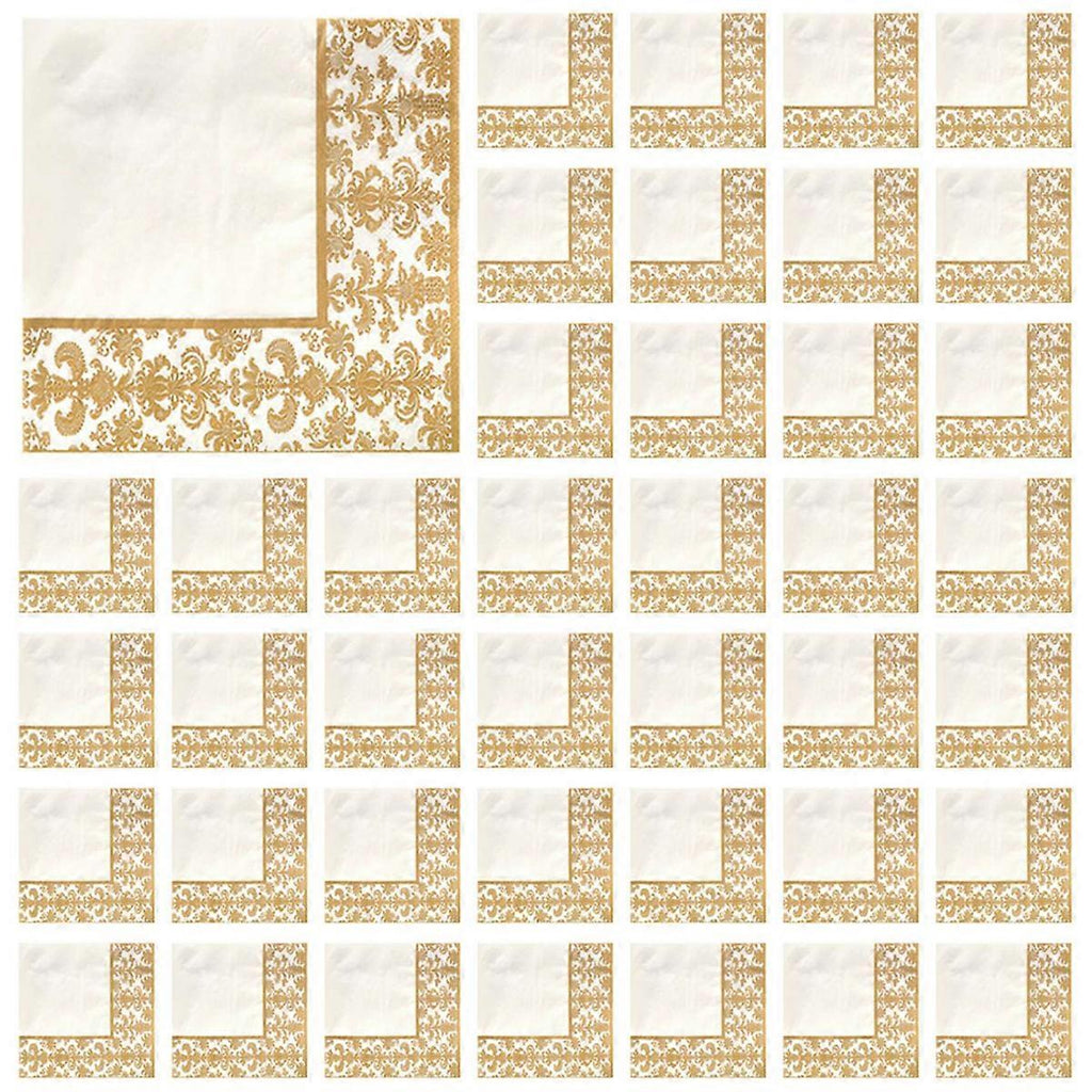 100Pcs Gold Printing Disposable Napkin Tissue Paper (Golden + White)